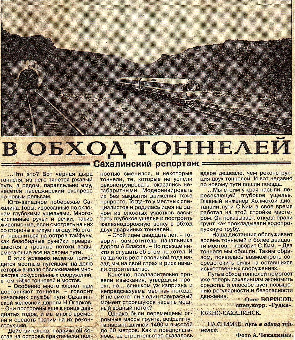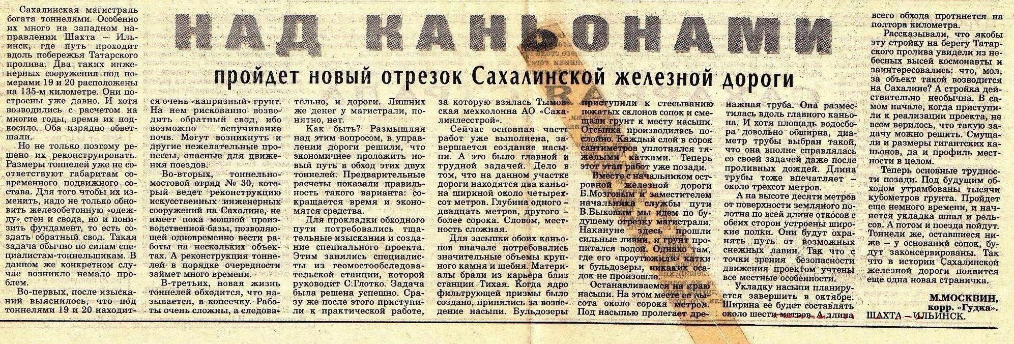 «Над каньонами пройдёт новый участок Сахалинской железной дороги» (газета «Гудок», 15.09.1995).