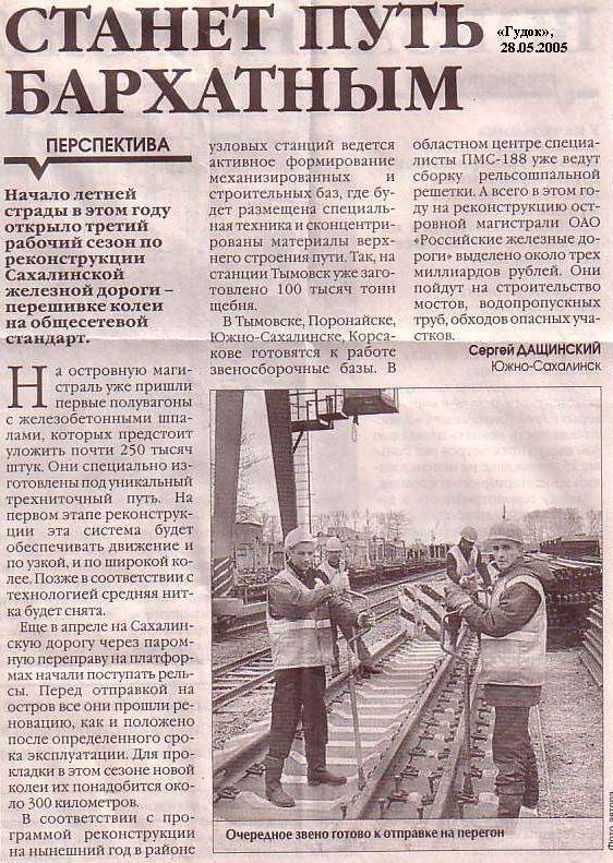 «Станет путь бархатным» (газета «Гудок», 28.05.2005).
