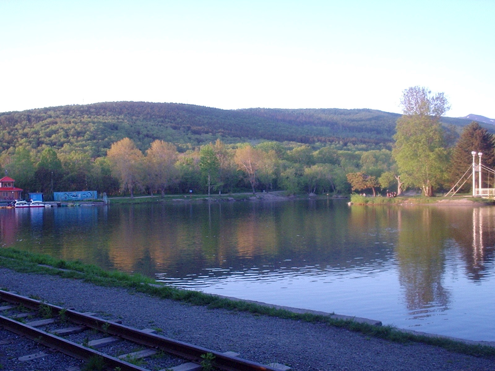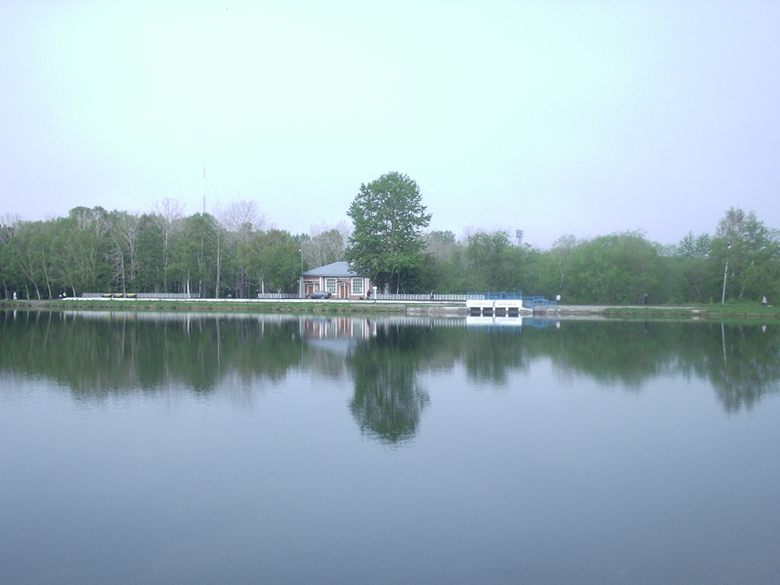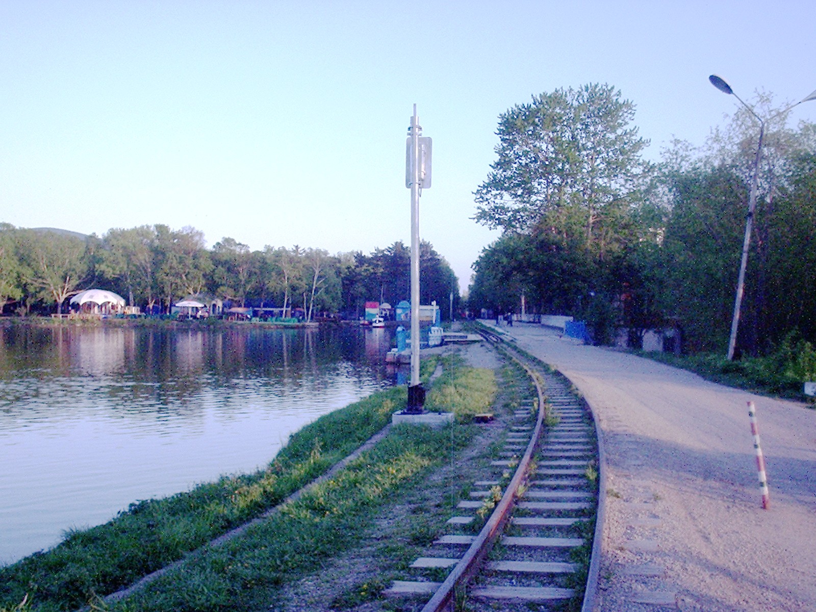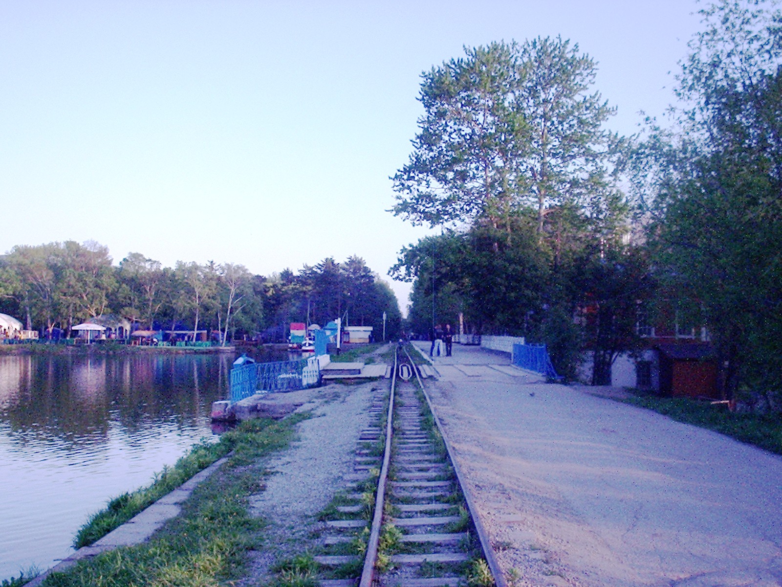 Водохранилище Верхнее. Вдали — вокзал на «станции» Комсомольская.