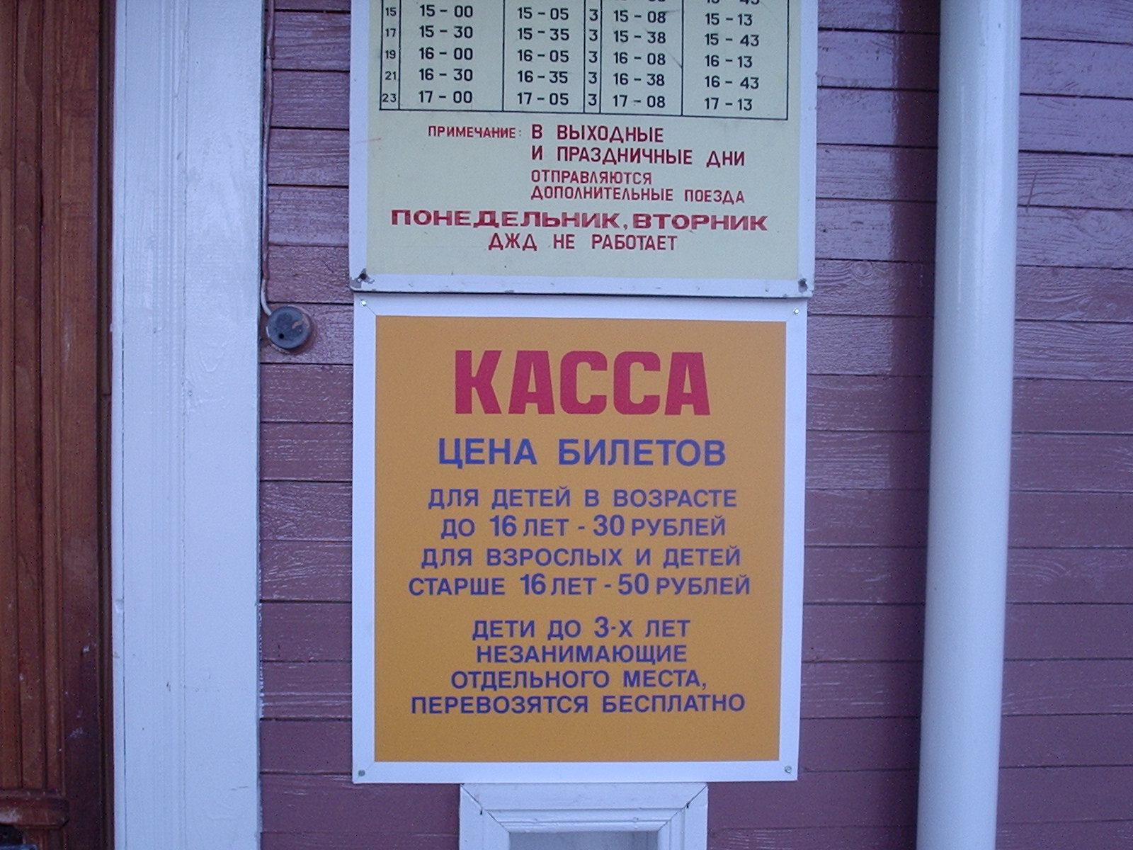 Вокзал на «станции» Комсомольская. Информация о стоимости проезда.