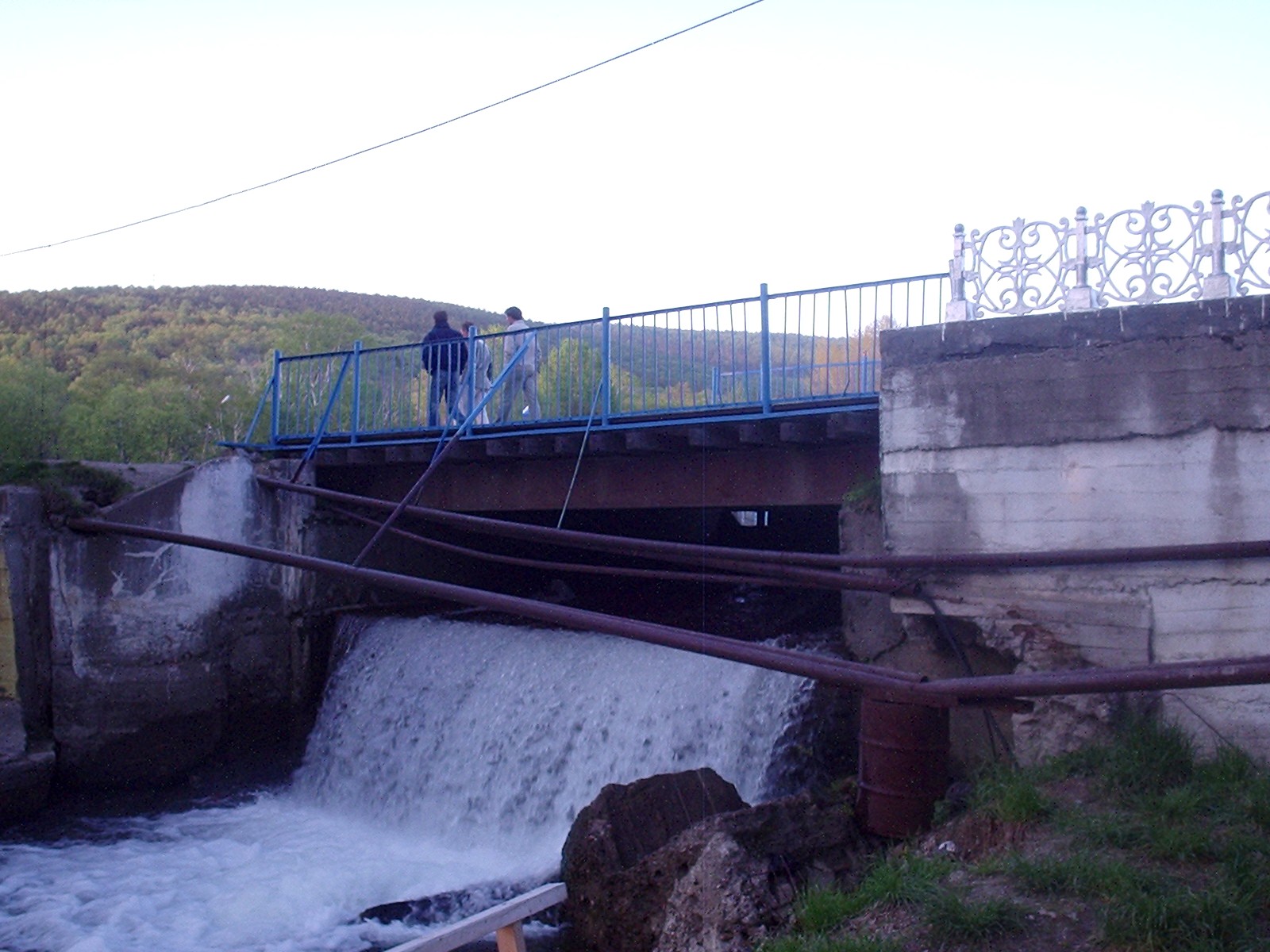 Вид из той же точки в противоположную сторону. Водопропускное сооружение в плотине водохранилища Верхнее на реке Рогатка.