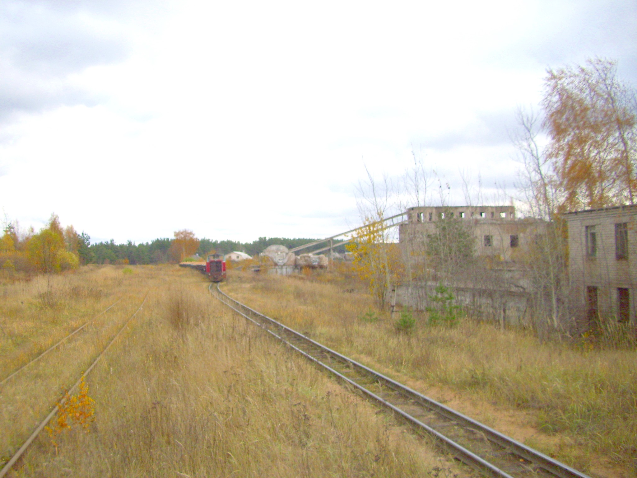 Приблизительно там же, вид в восточном направлении. Со стороны карьера следует поезд.