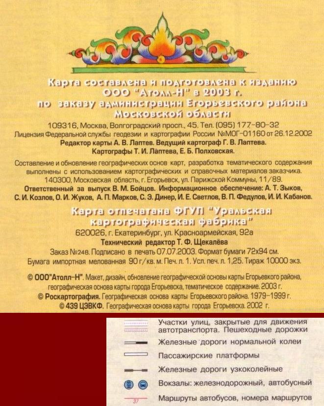 Тот же самый план города — выходные данные и условные обозначения.