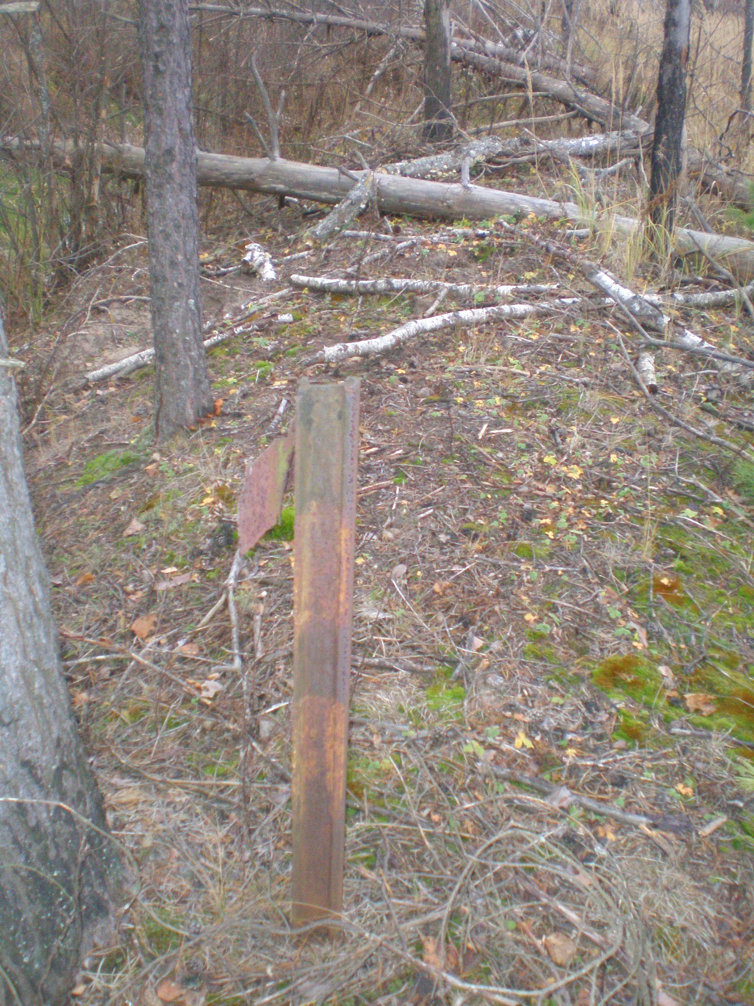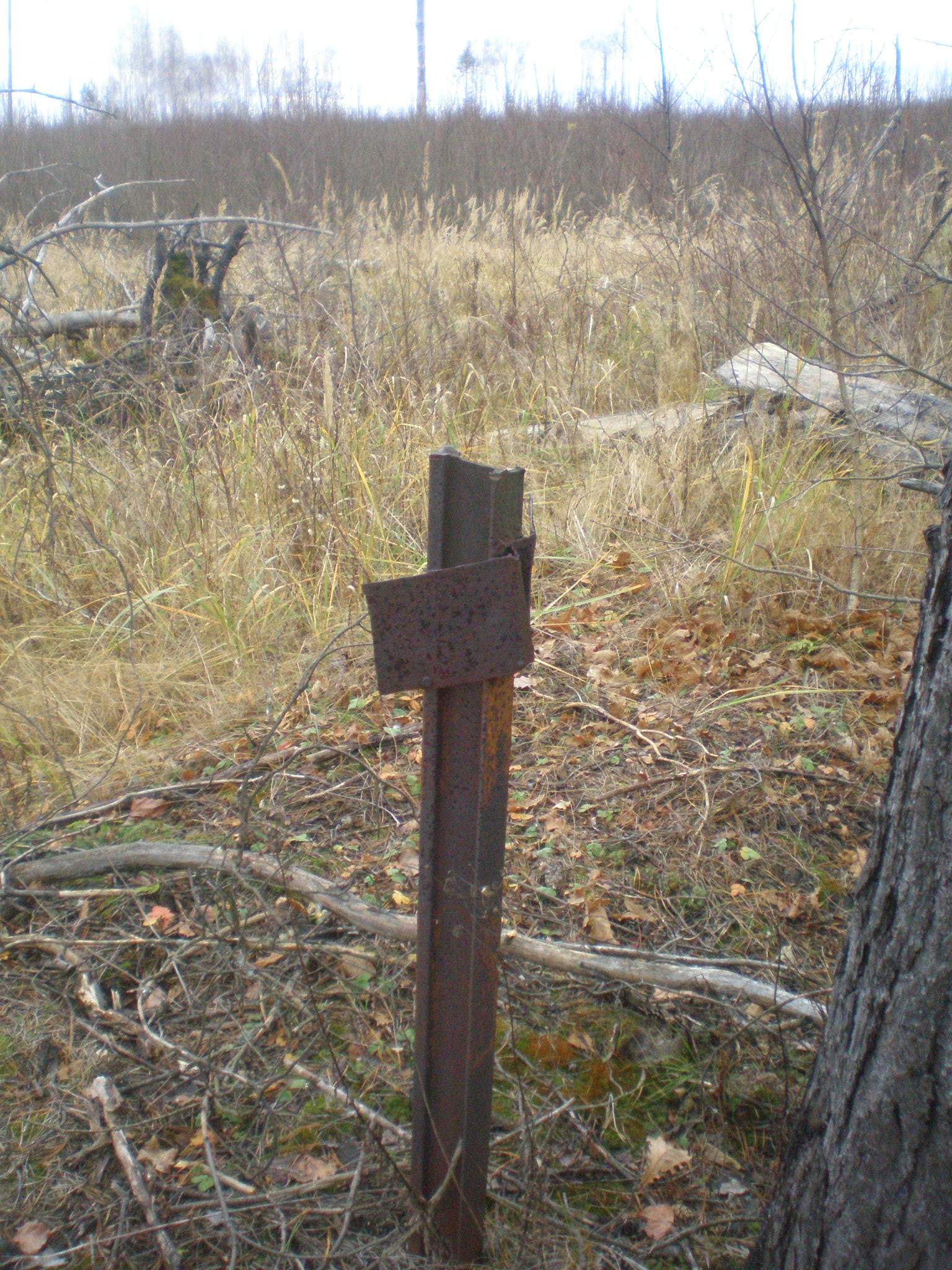 Там же. Предположительно, километровый знак, сохранившийся со времён работы узкоколейной железной дороги.