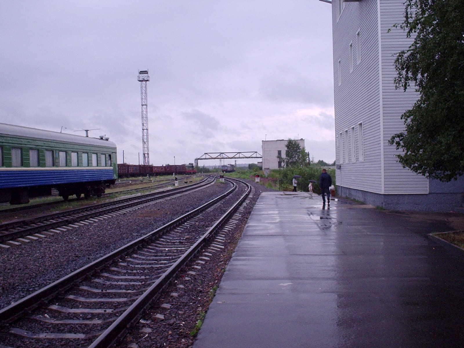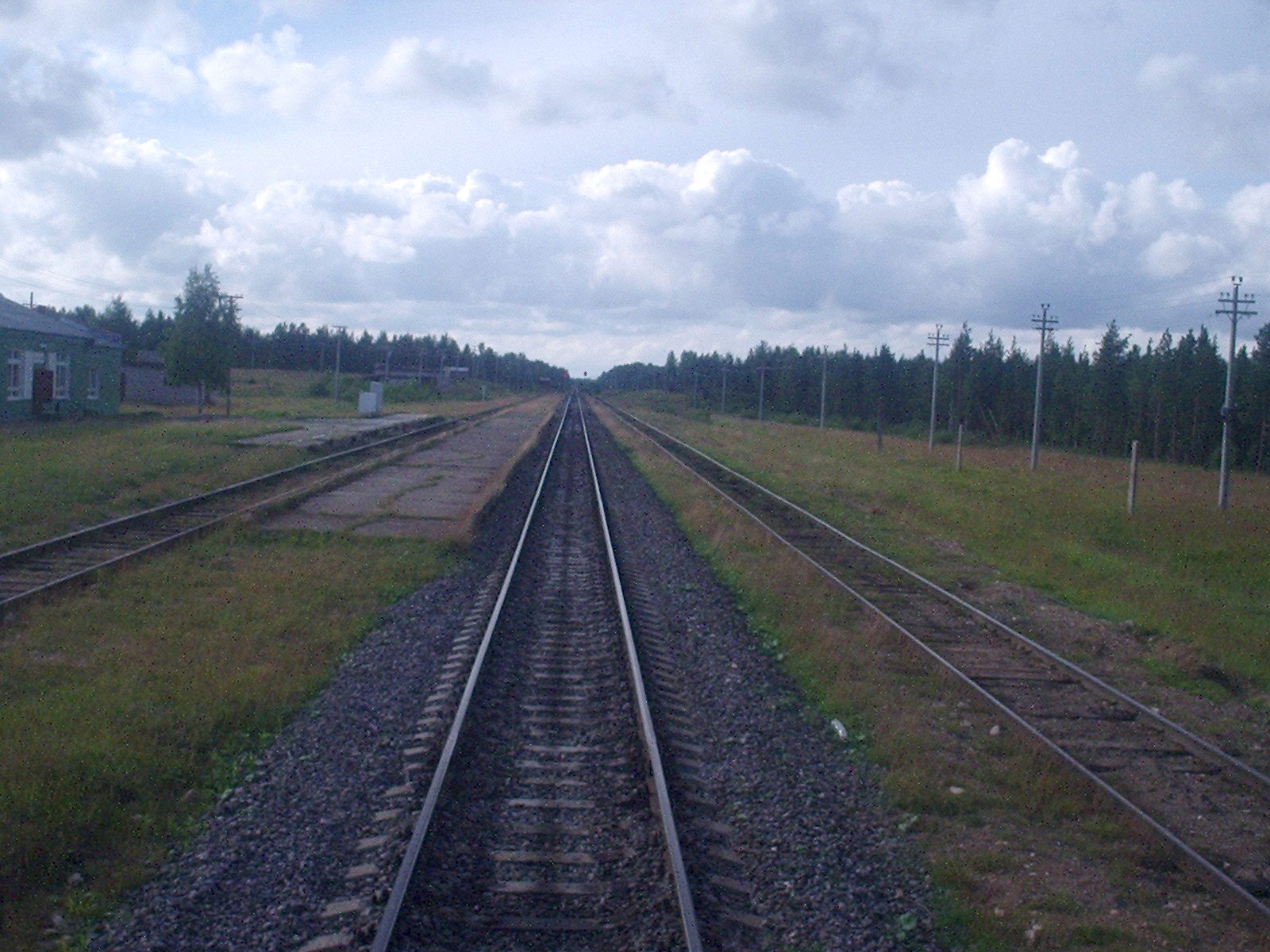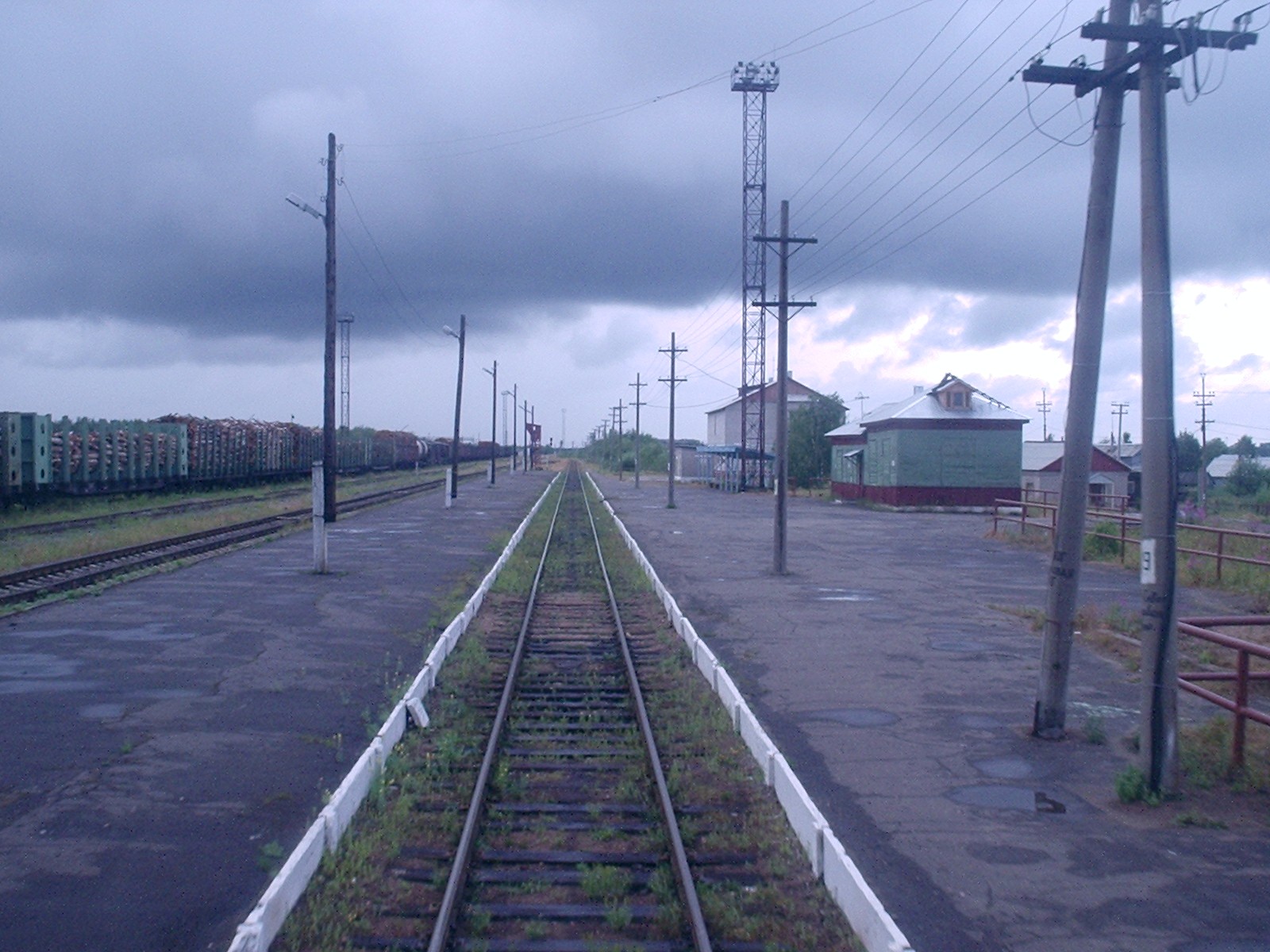 Станция Лодьма (Лодемский — так написано на главном здании). Вид в направлении Архангельска.