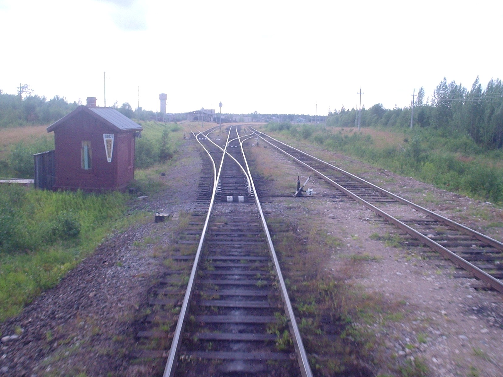 Станция Карпогоры-Товарные осталась позади. Слева находится подъездной путь, ведущий