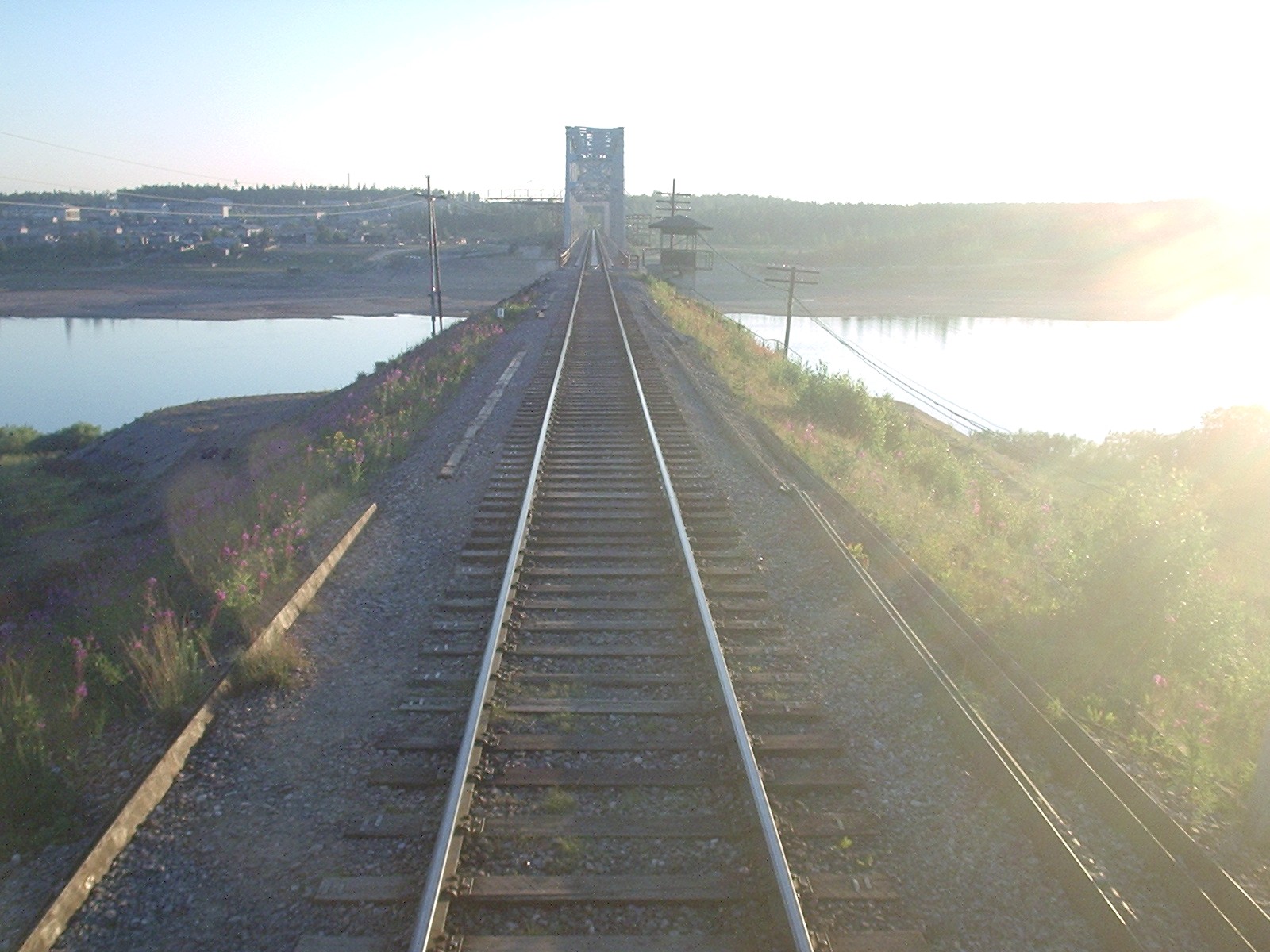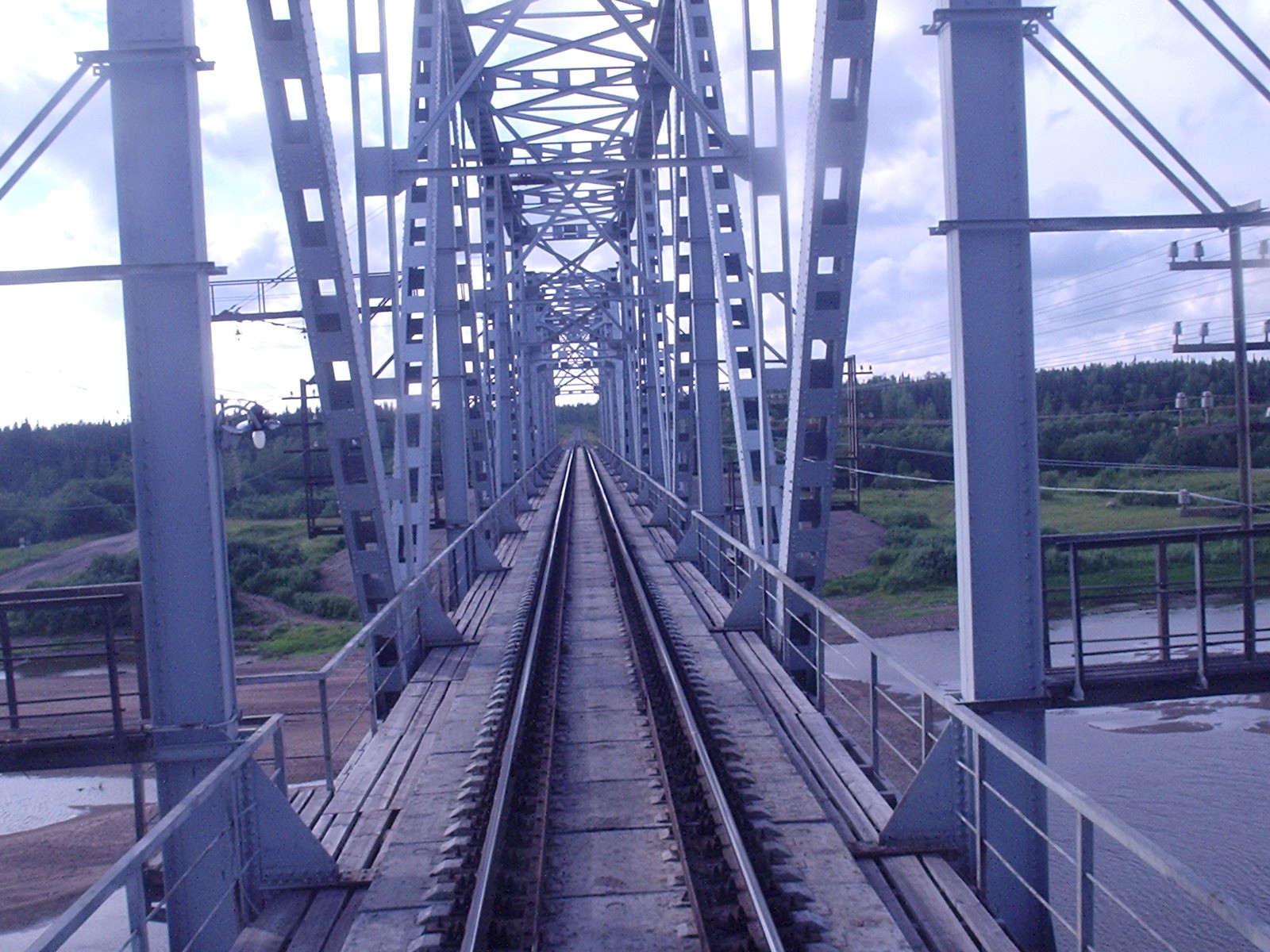 Железнодорожная линия на втором мосту через реку Пинега. Вид в сторону Архангельска.