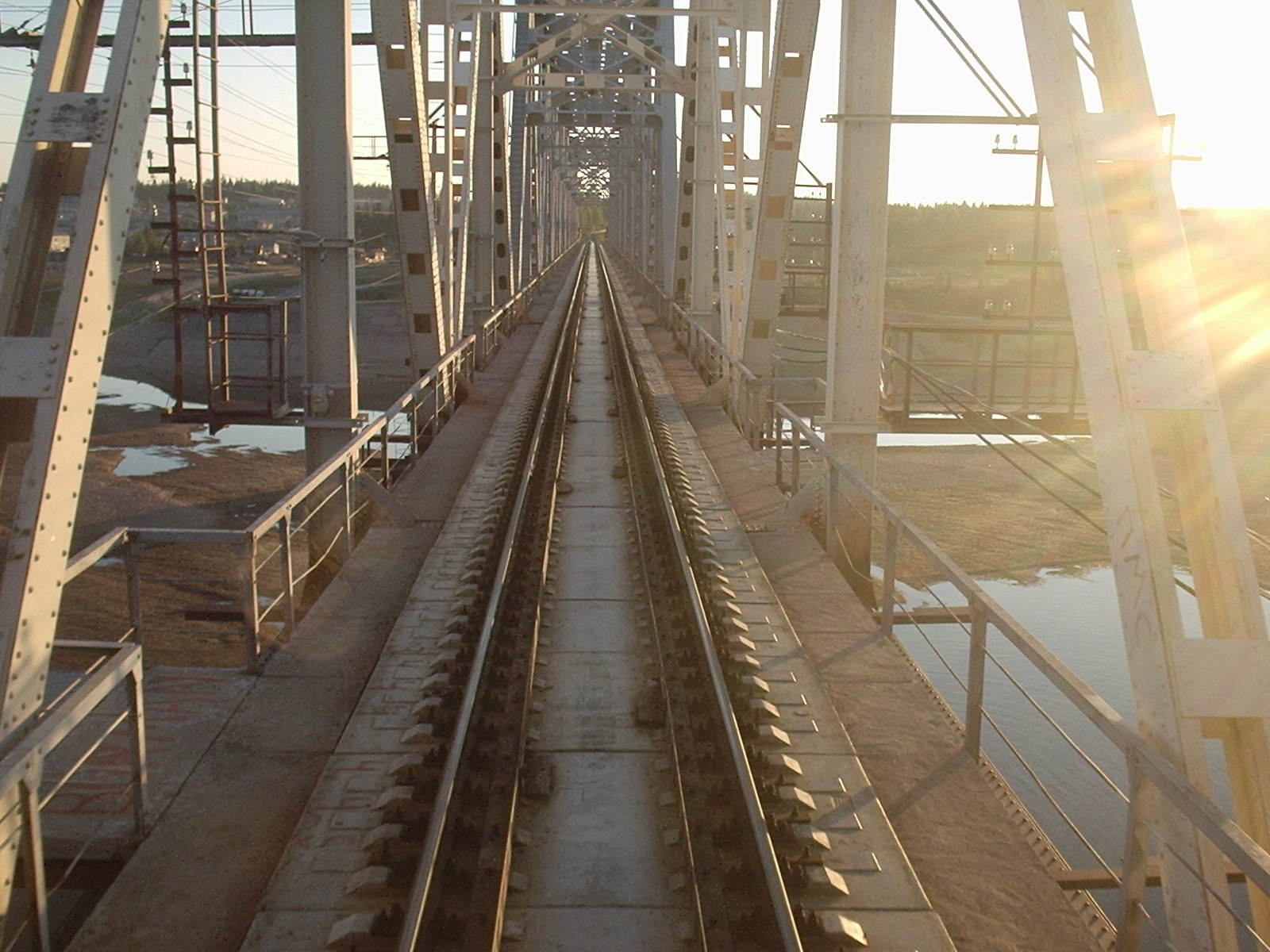 Железнодорожная линия на первом мосту через реку Пинега. Вид в сторону Архангельска.