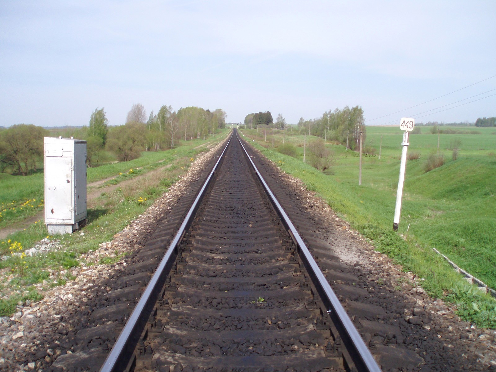 Вид из той же точки в противоположном направлении, в сторону станции Рудня. Впереди — конец 449 километра, начало 450 километра.