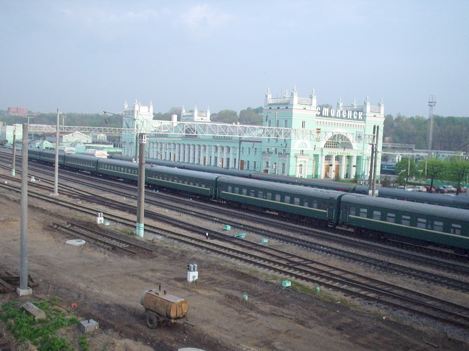 Вокзал на станции Смоленск-Центральный. Вид с переходного моста в западном направлении.