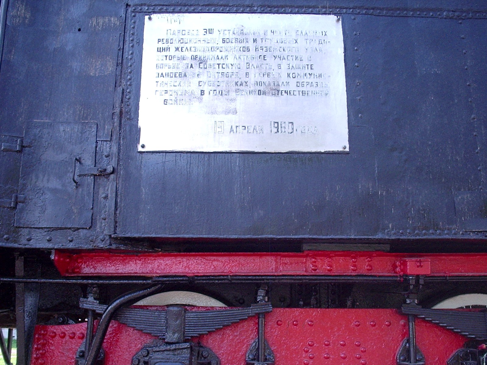 Мемориальная табличка на паровозе Эш-4290.