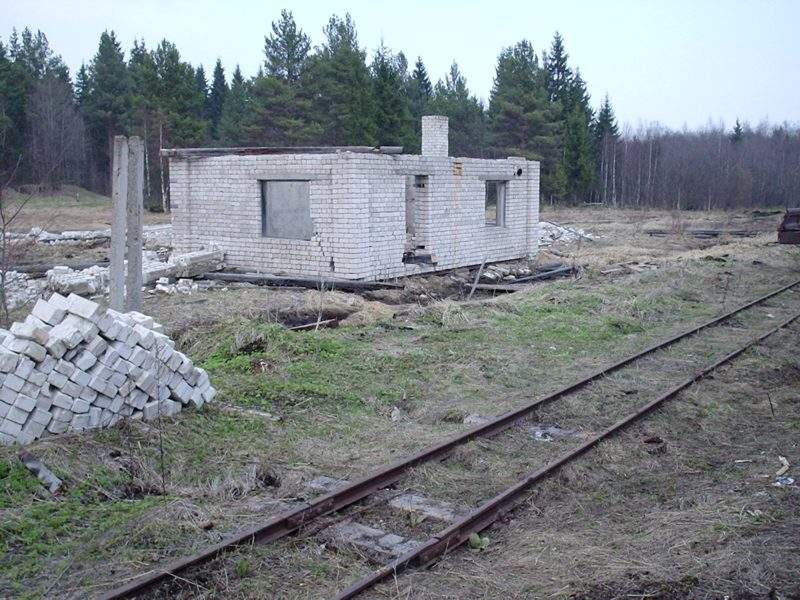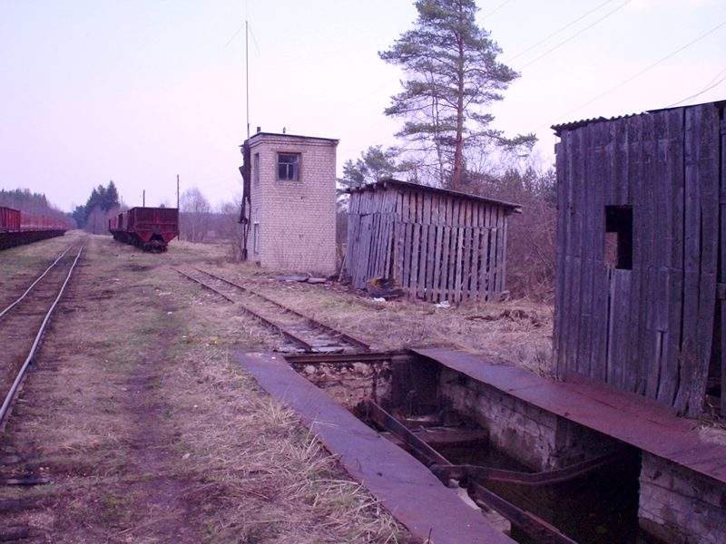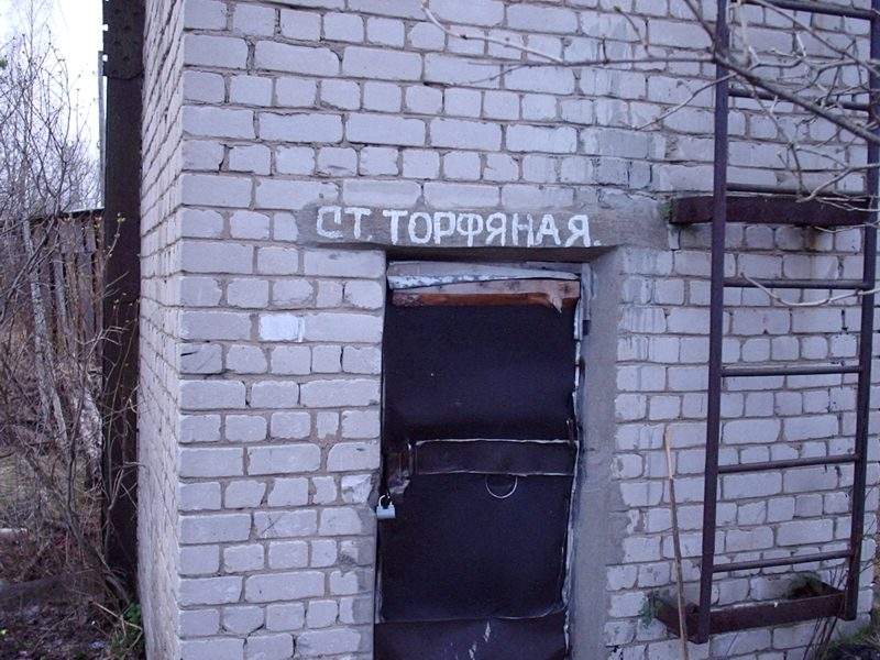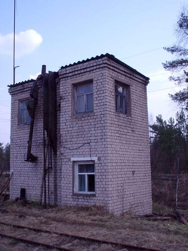 Бывшие вагонные весы на станции Торфяная. Справа — главное здание станции Торфяная.