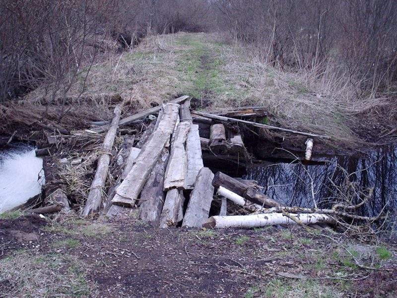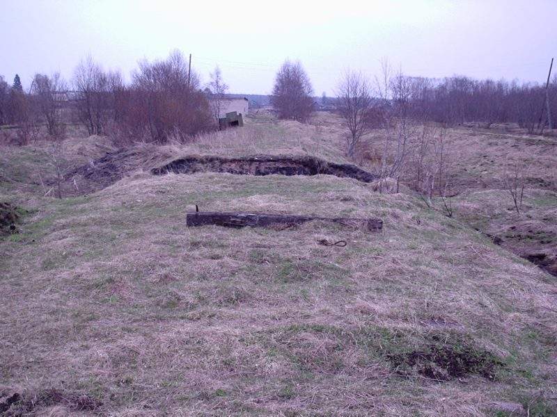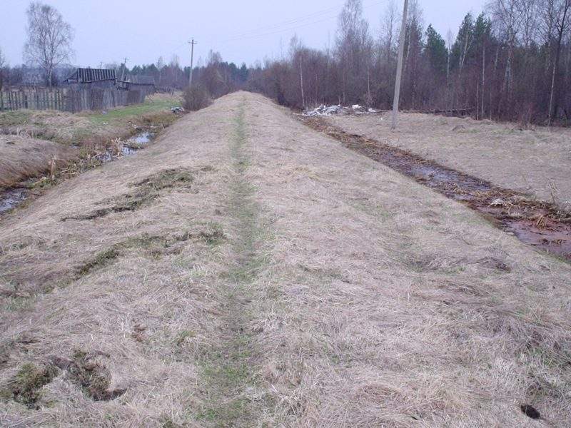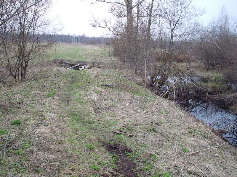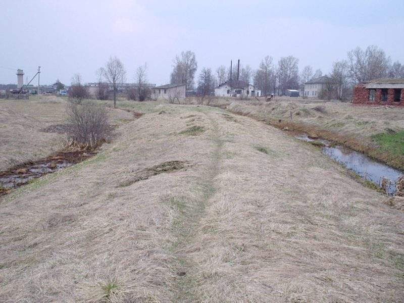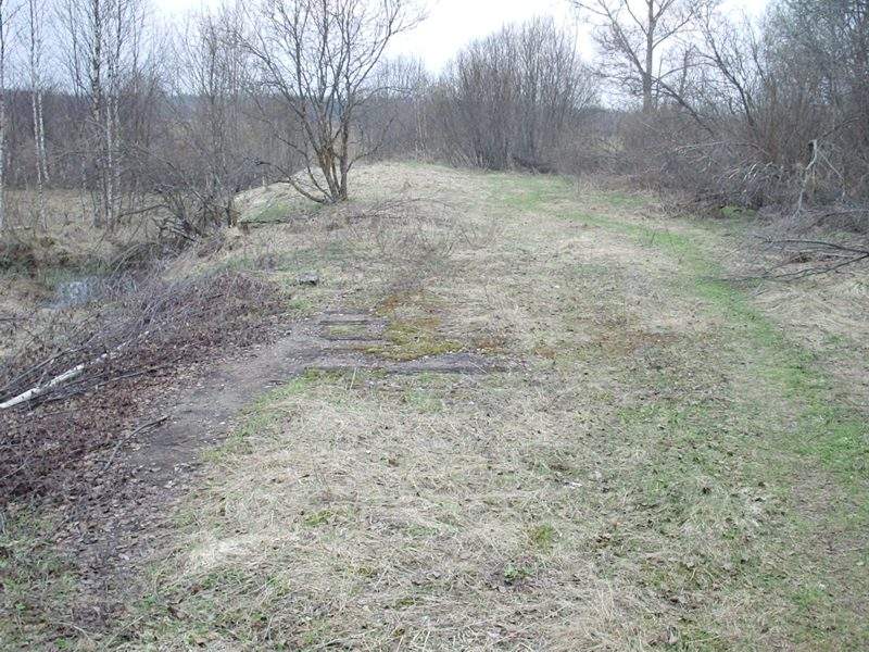 Немногим ближе к перегрузочной станции, вид в ту же сторону. Впереди — полуразрушенный мост через канаву.