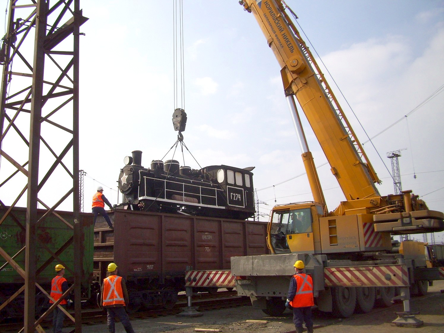 Страница является незавершённой. На снимках: установка паровоза-памятника у норильского вокзала.