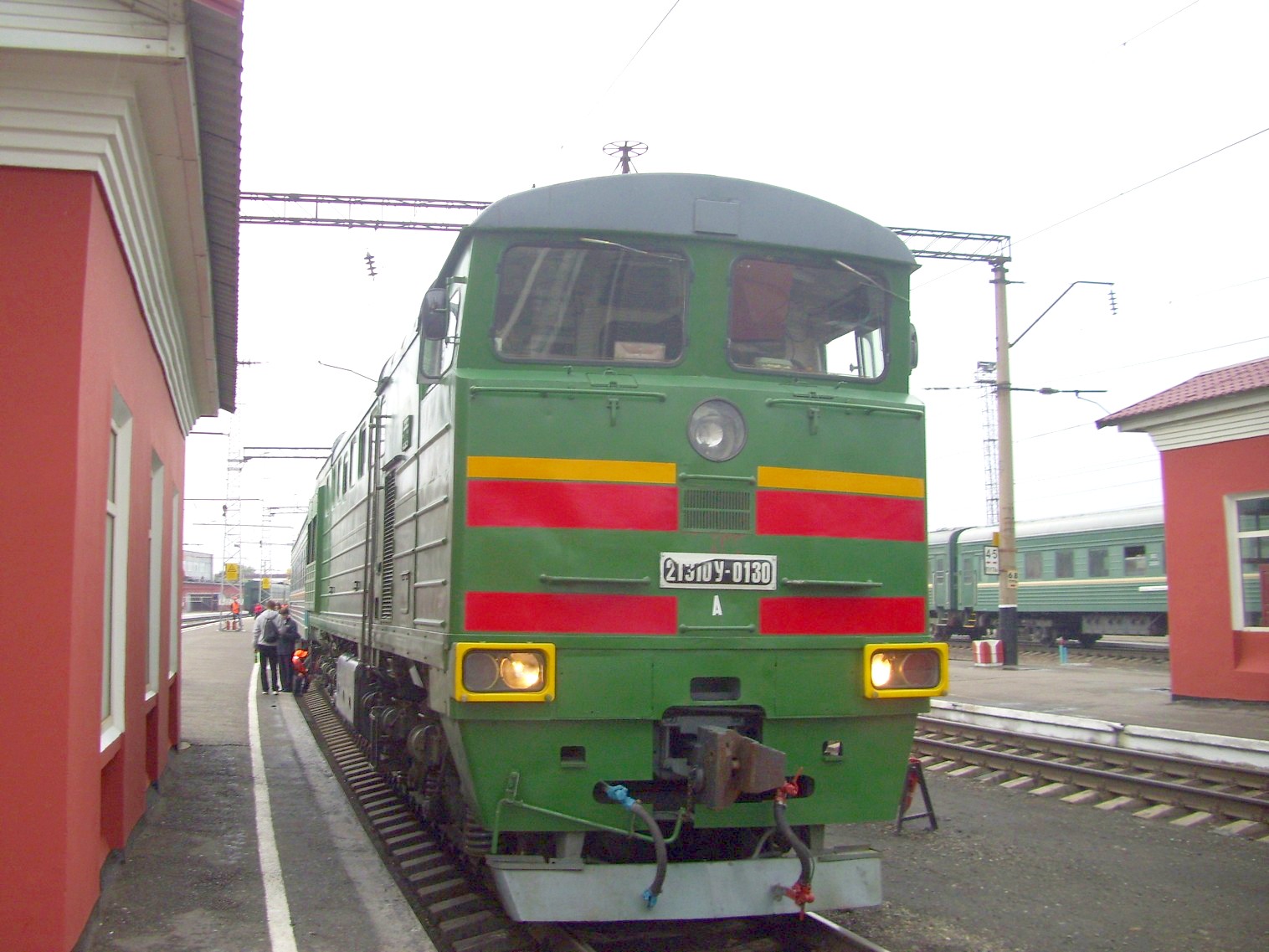 Станция Барнаул. Пригородный поезд «Восток» (секция тепловоза 2ТЭ10У-0130 с пассажирскими вагонами)