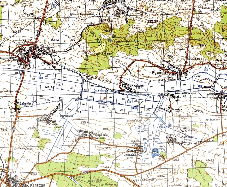 Узкоколейная железная дорога на топографической карте масштаба 1:100 000, изданной в 1992 году.