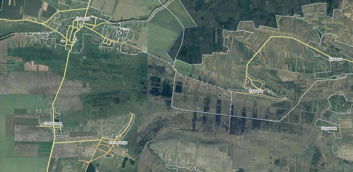 Узкоколейная железная дорога на спутниковых снимках, ориентировочная дата съёмки — 2014 год.