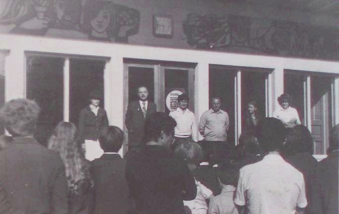 «Беседа делегата XXVI съезда компартии Украины П.К. Чайка с юными железнодорожниками».
