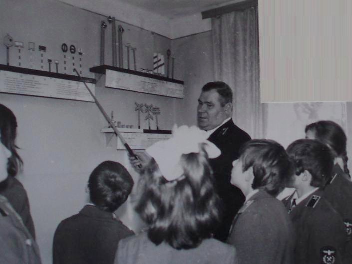«Инструктор Жданов Г.И. проводит занятие с юными железнодорожниками».
