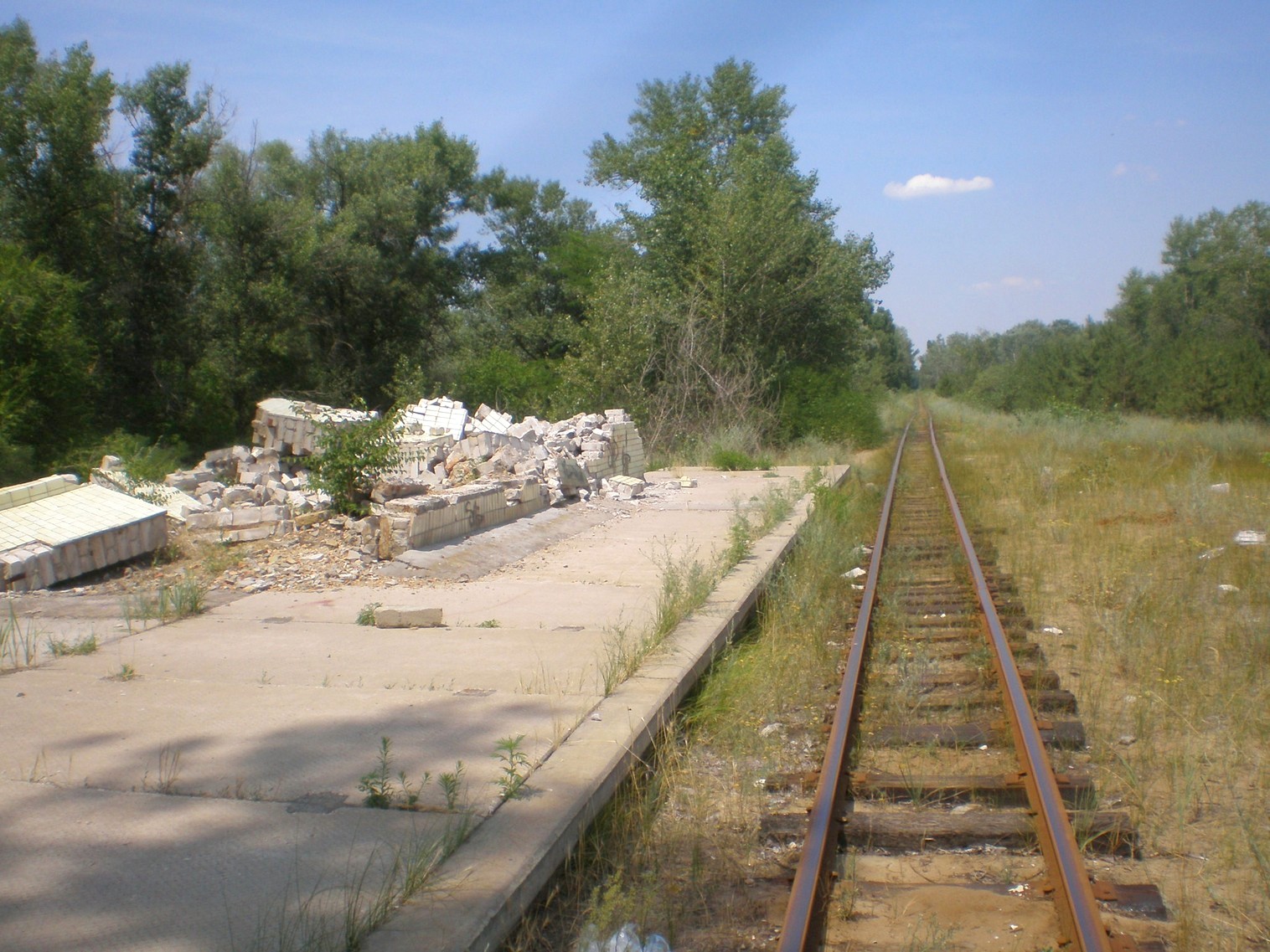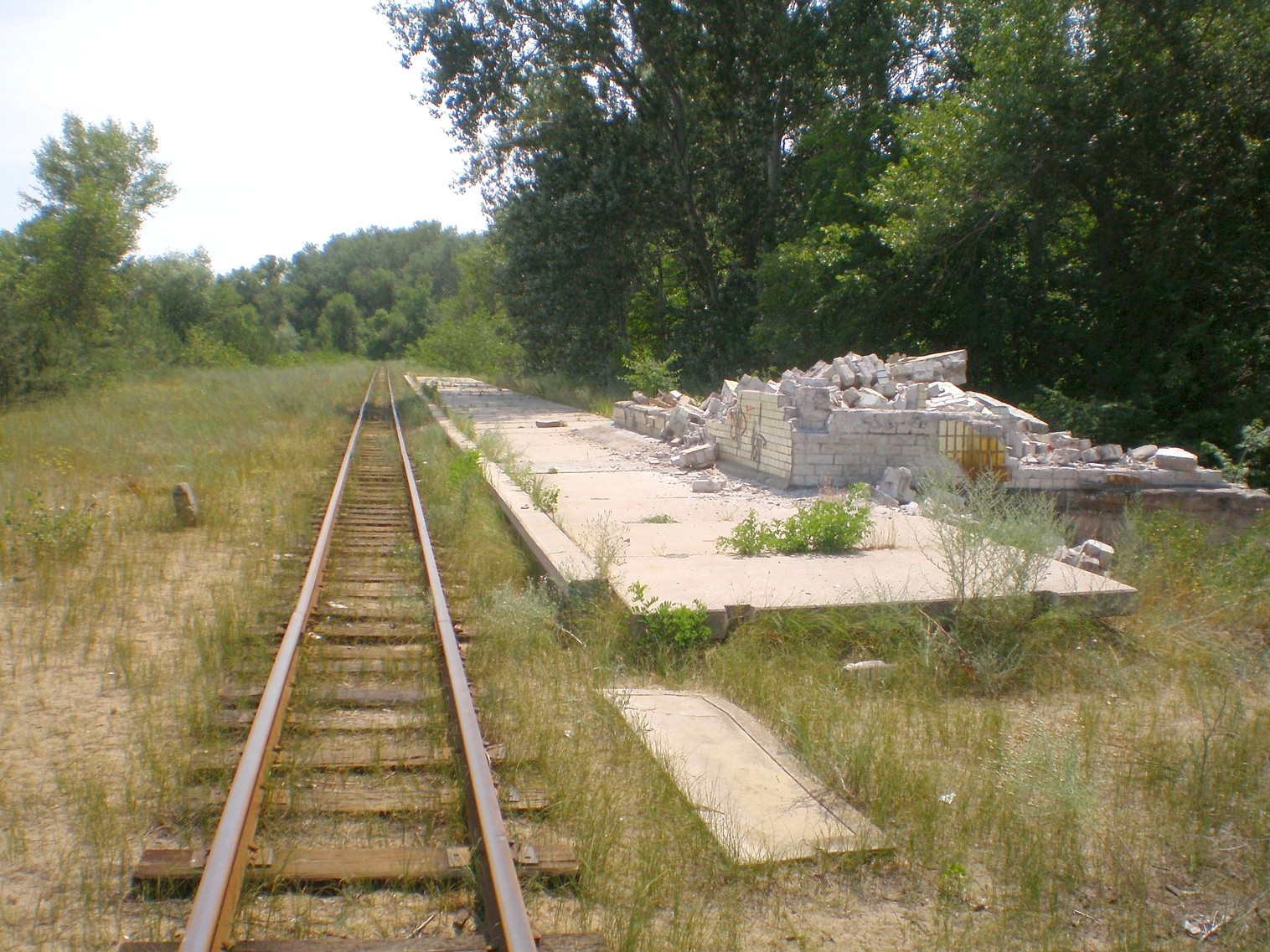 Станция 30 лет Победы. Путевое развитие ликвидировано, здание разрушено.