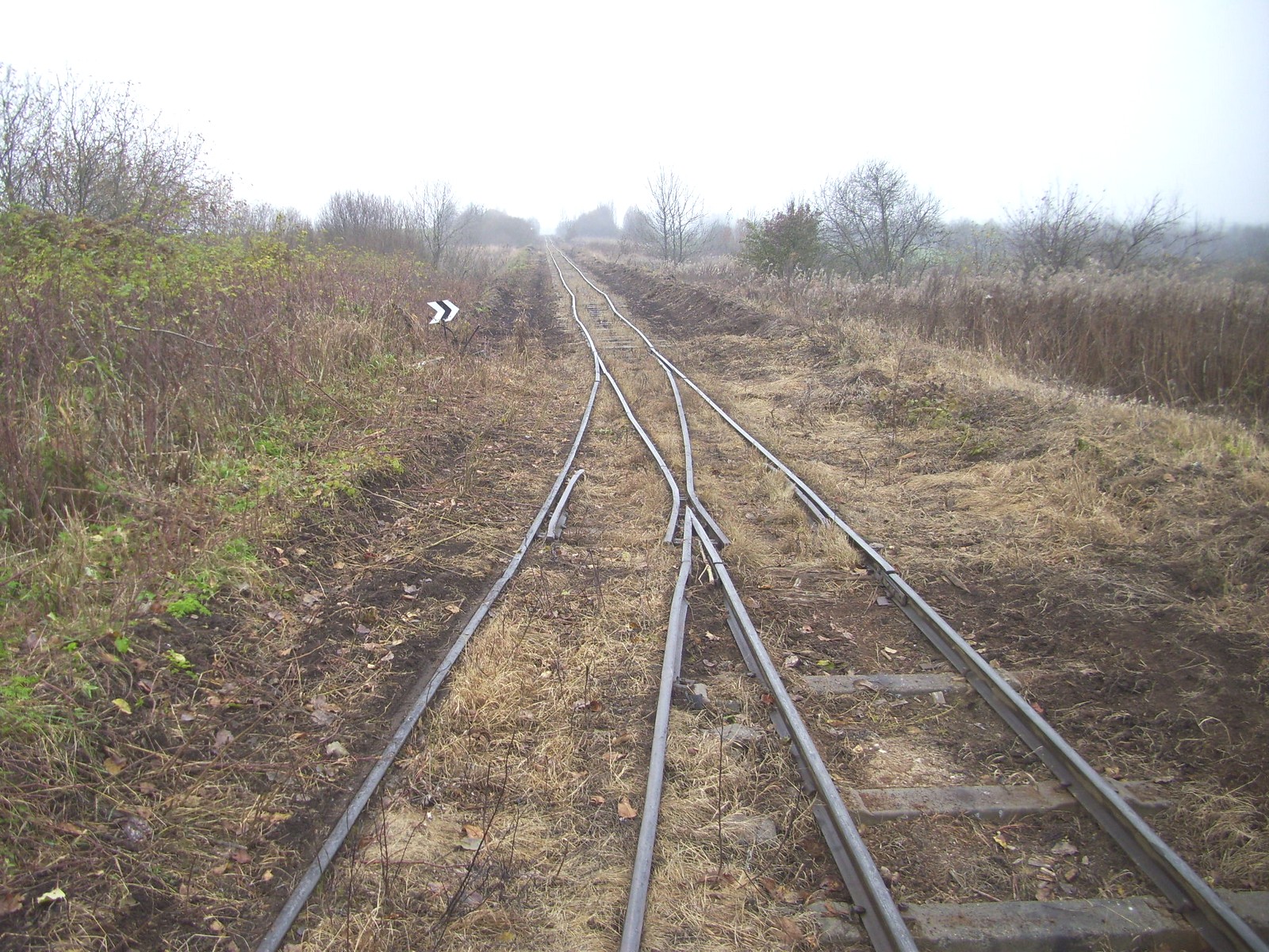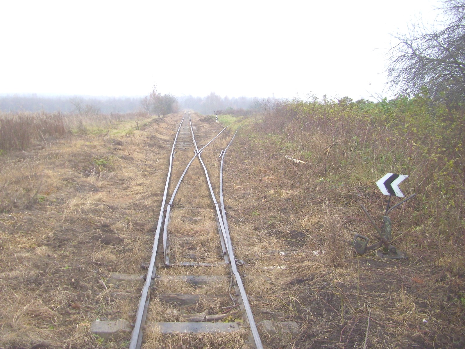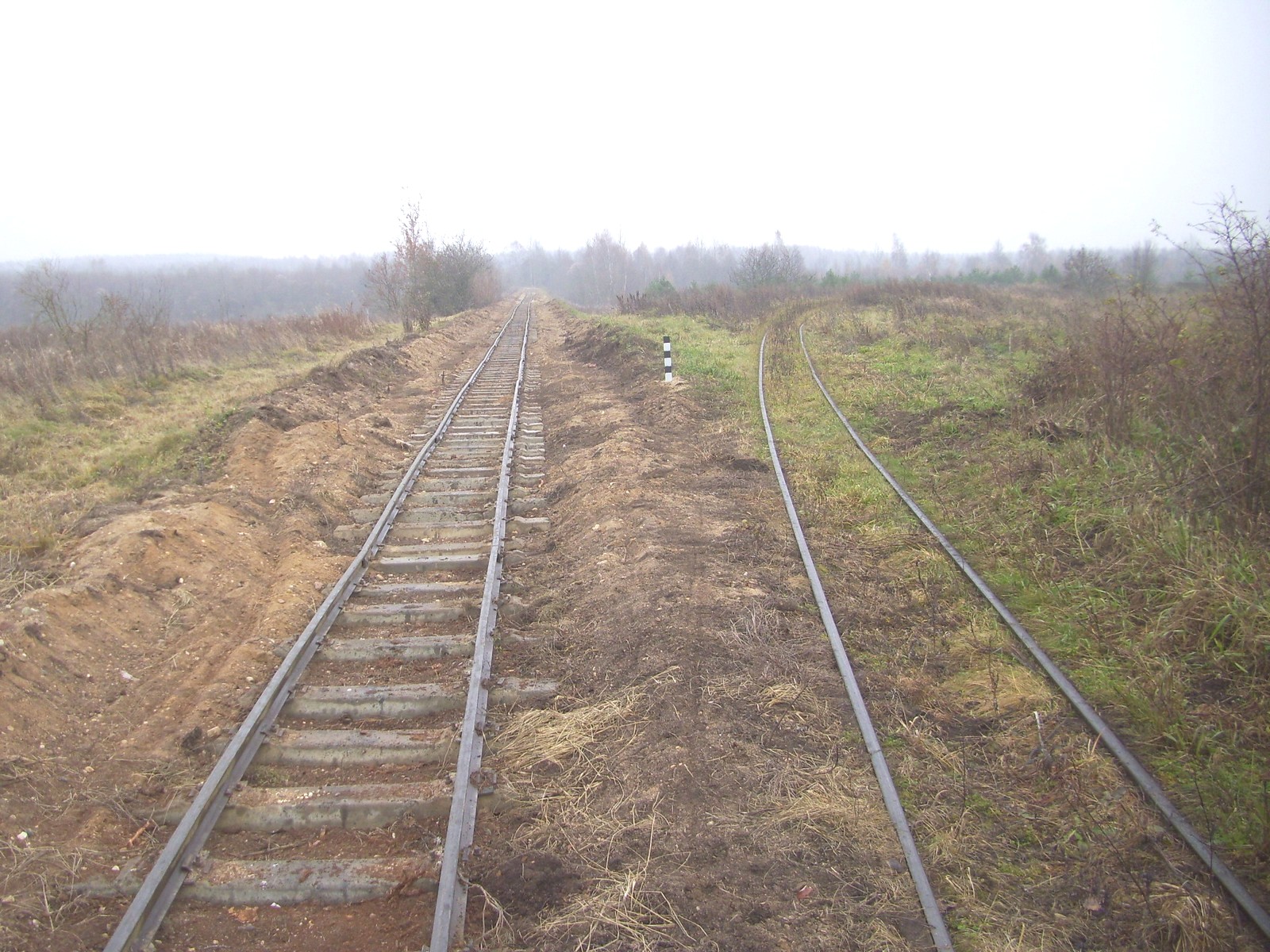 Станция Липовка. Прямо — действующая линия, направо — недействующая линия на старый торфомассив.