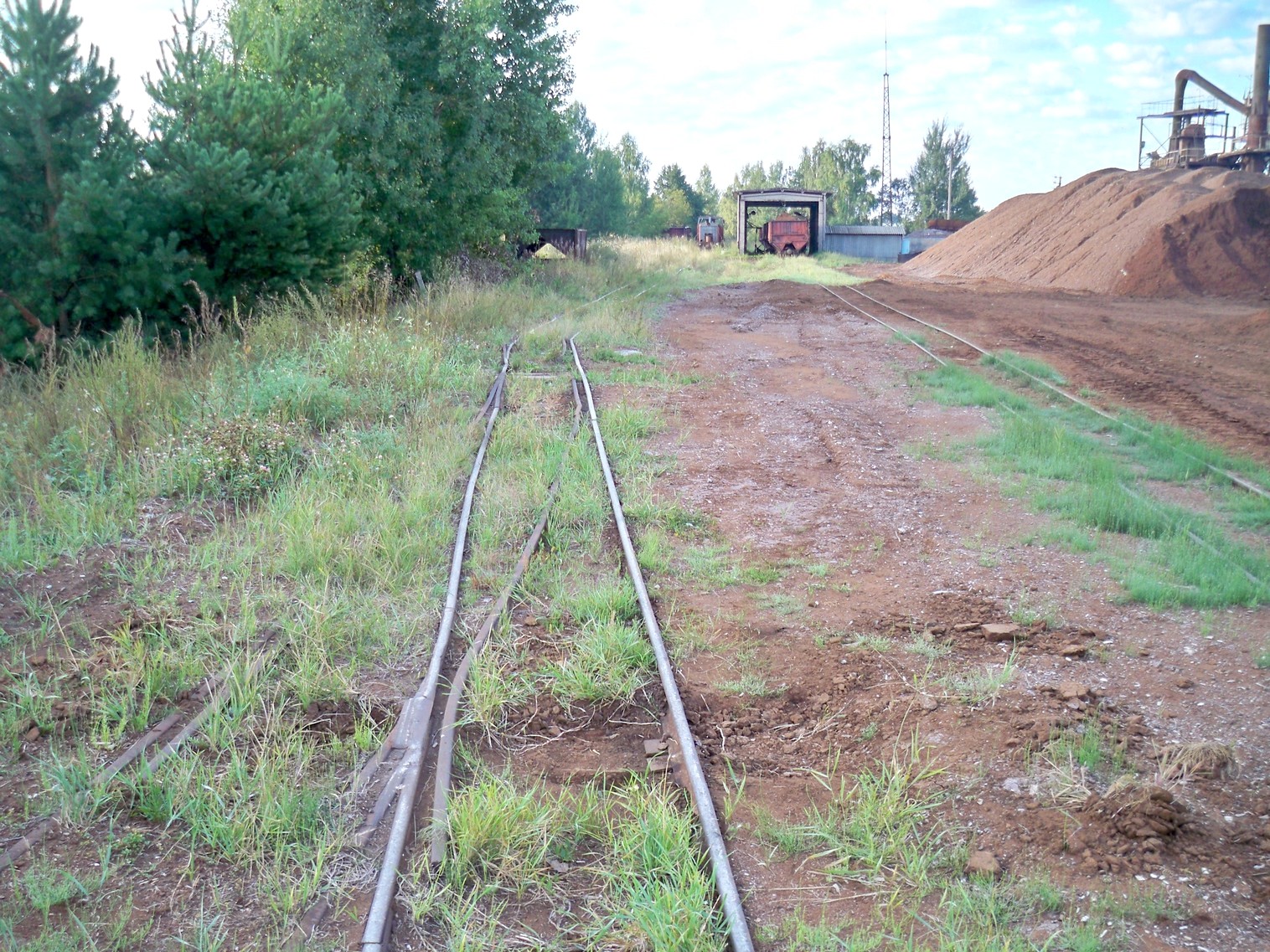 На снимках: недействующие пути в посёлке Туголица, завод и действующие пути.