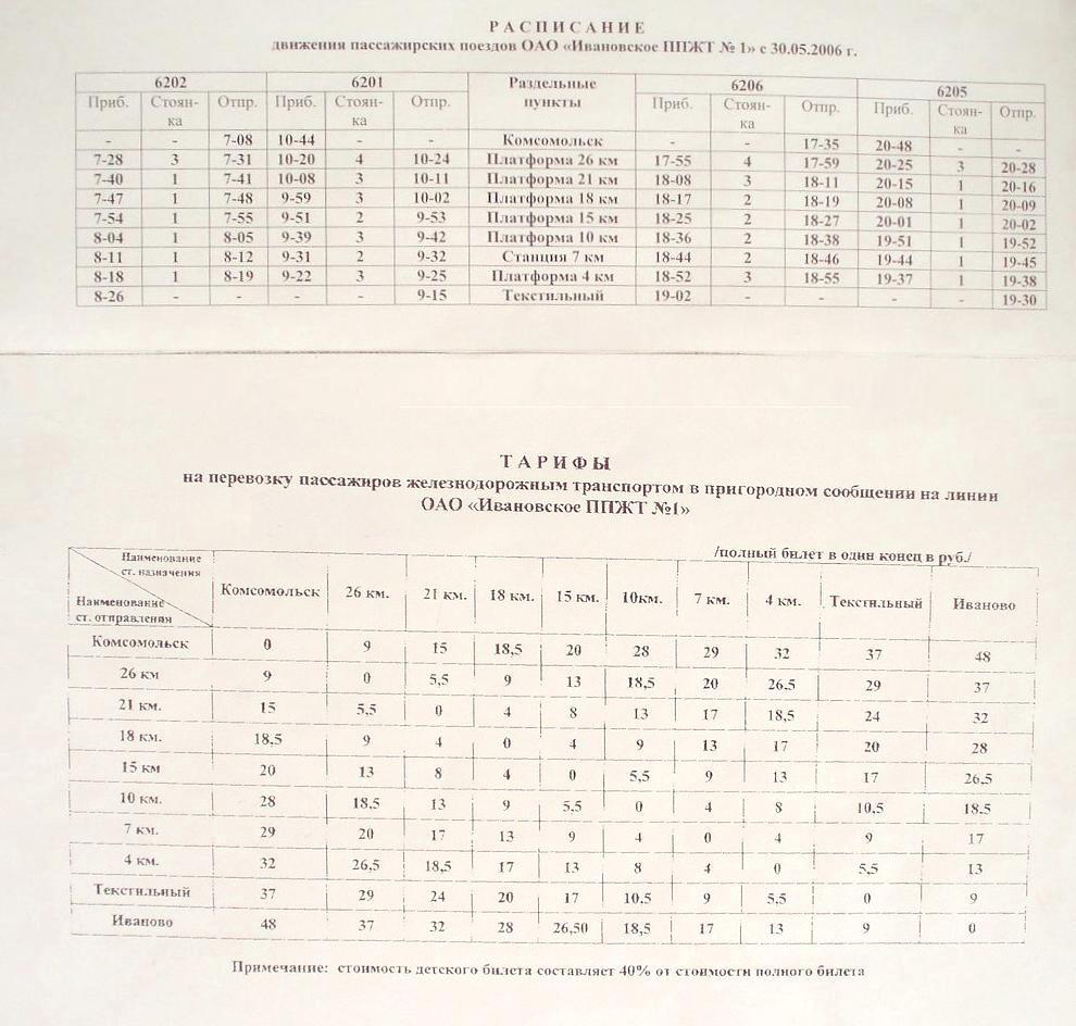 Текстильный — Комсомольск с 1 июня 1997 года. Расписание