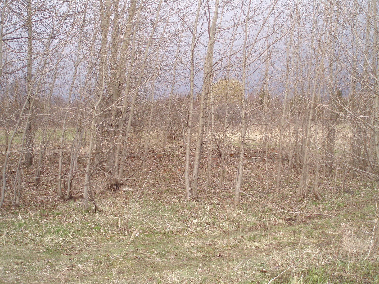 Разрушенное главное здание станции Южный (от него остался кирпичный фундамент, заросший деревьями).