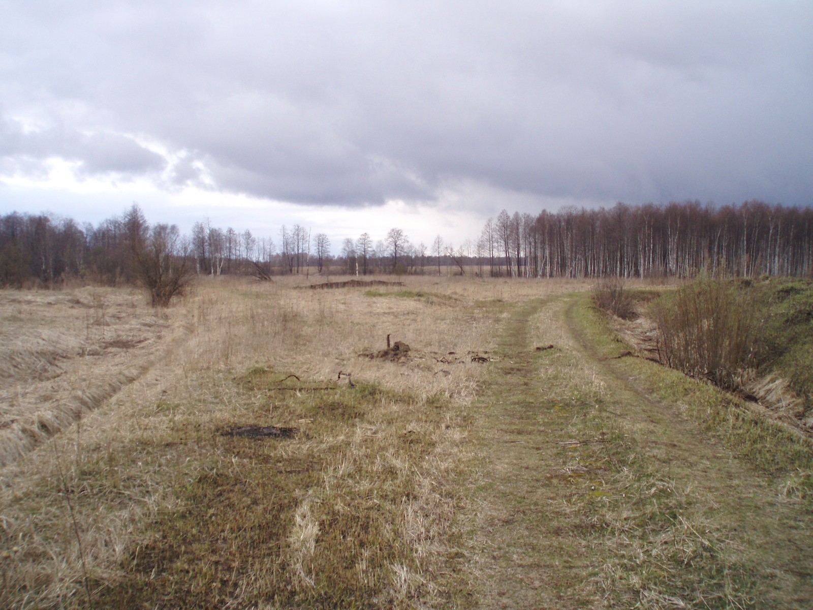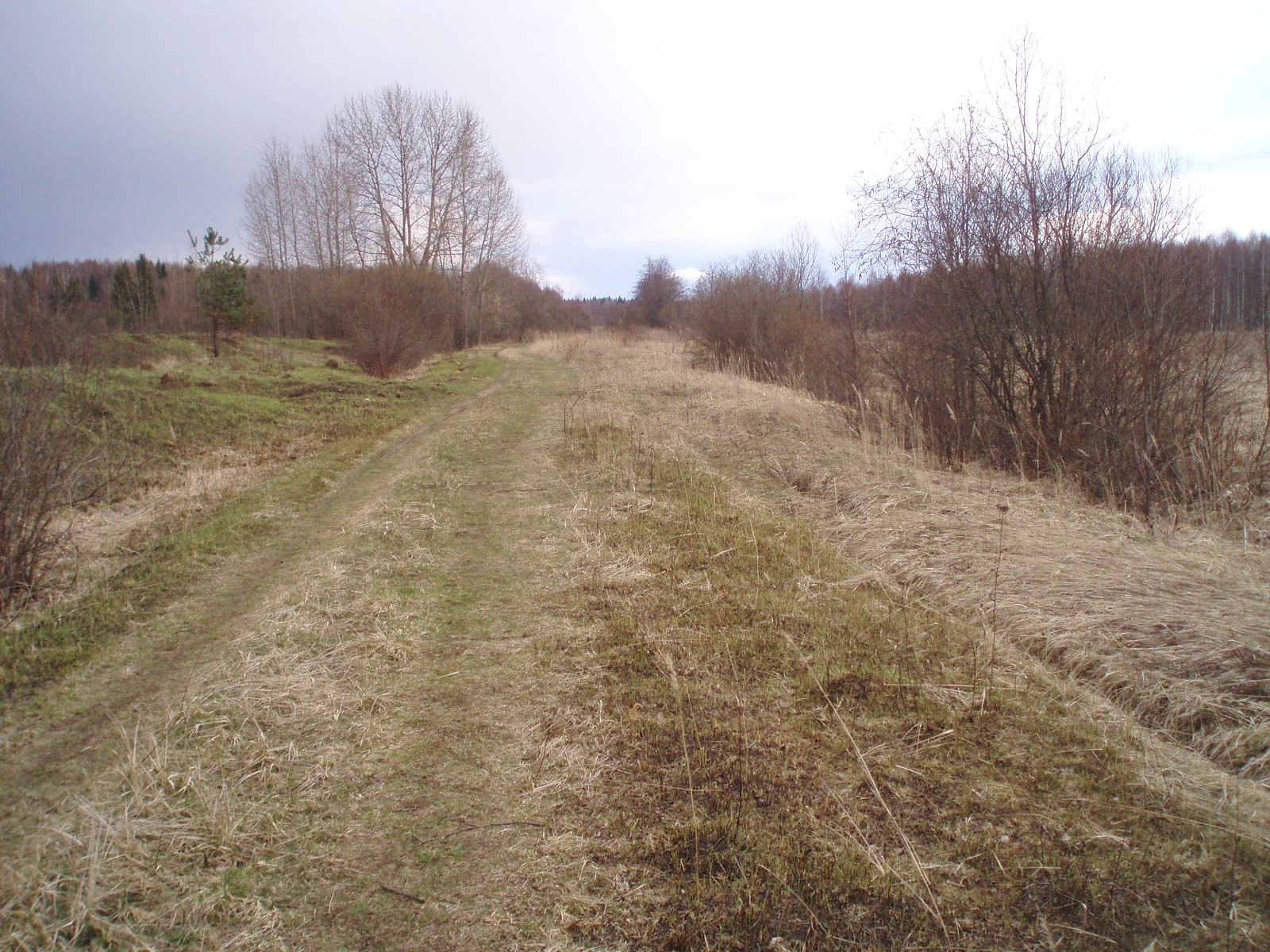 Бывший переезд (пересечение с автодорогой Коптево - Подозёрский) у села Архангел. Вид в северном направлении.