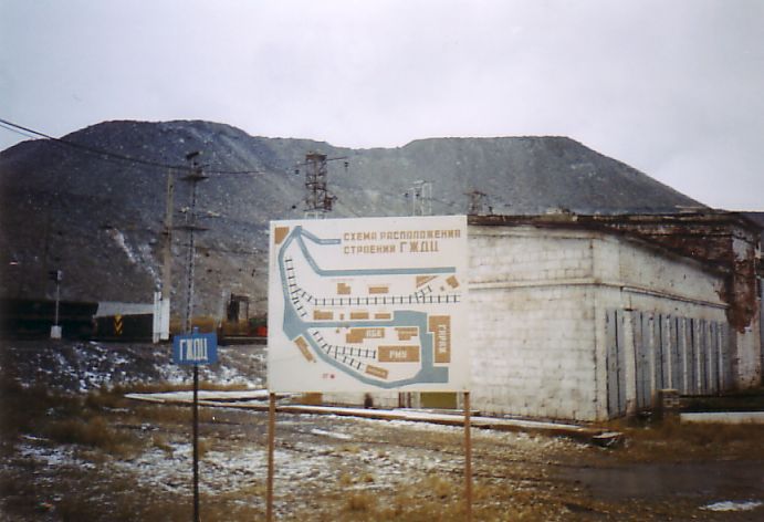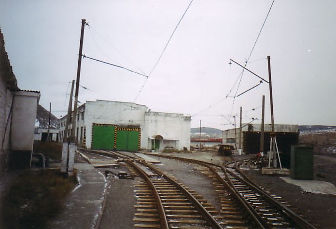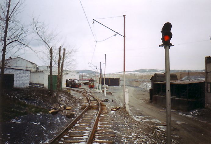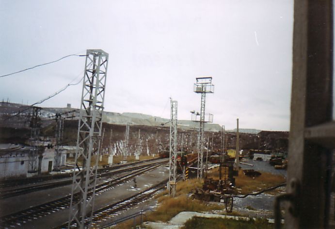 Впереди — территория горно-железнодорожного цеха (депо узкоколейной железной дороги).
