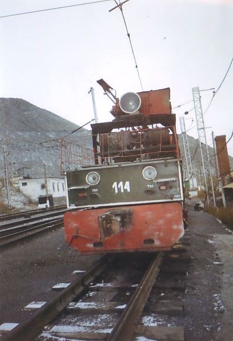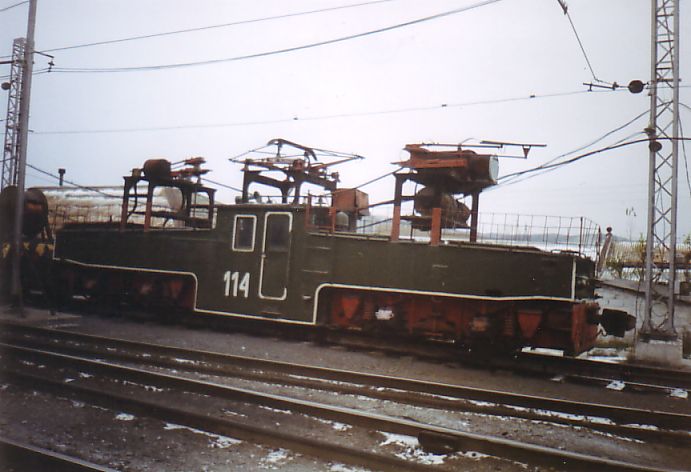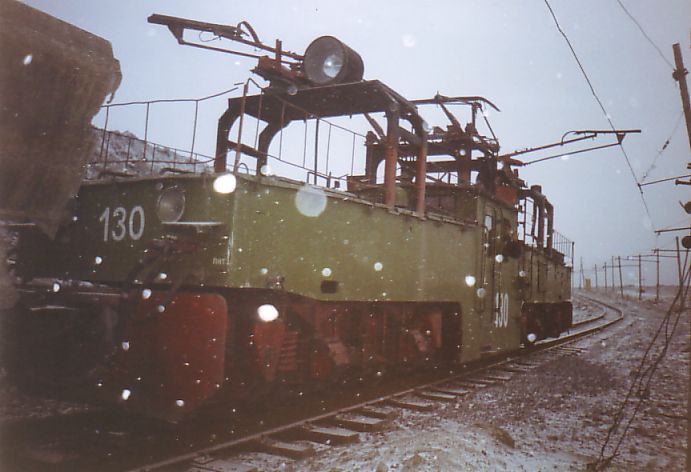 Электровоз EL3-130 на пути, ведущем к месту погрузки магнезита (недалеко от станции ДОФ-2).