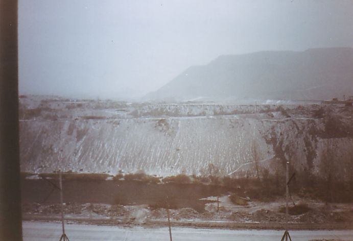 Вид в сторону металлургического завода. Вдали сливается расплавленный шлак.