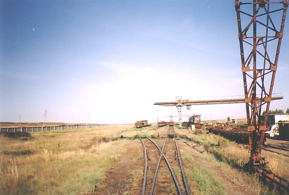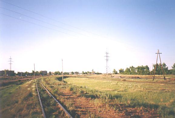 Магистральный путь, вид в сторону Шантобе. Справа — территория перегрузочной станции.