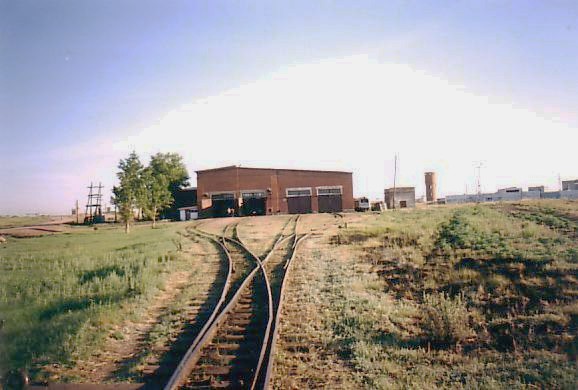 Вид на локомотивное депо из крайней юго-восточной точки узкоколейной железной дороги.
