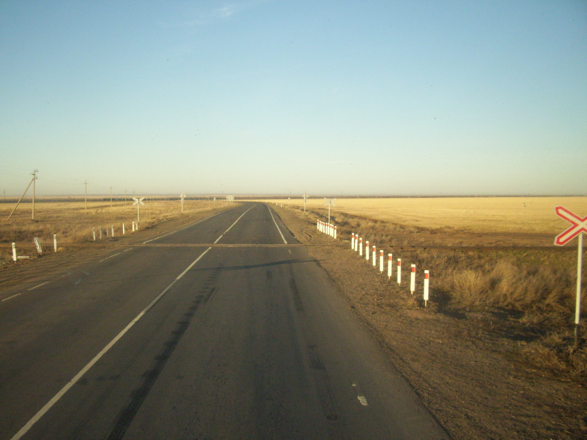 Окрестности города Атбасара. Пересечение узкоколейной железной дороги с автодорогой Астана — Кустанай.