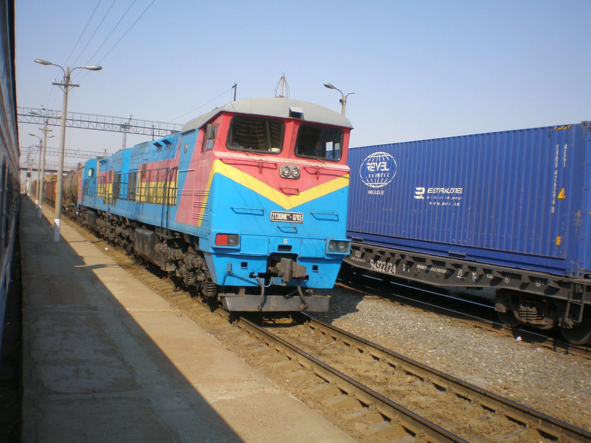 тепловоз 2ТЭ10МК-0765 с грузовым поездом.