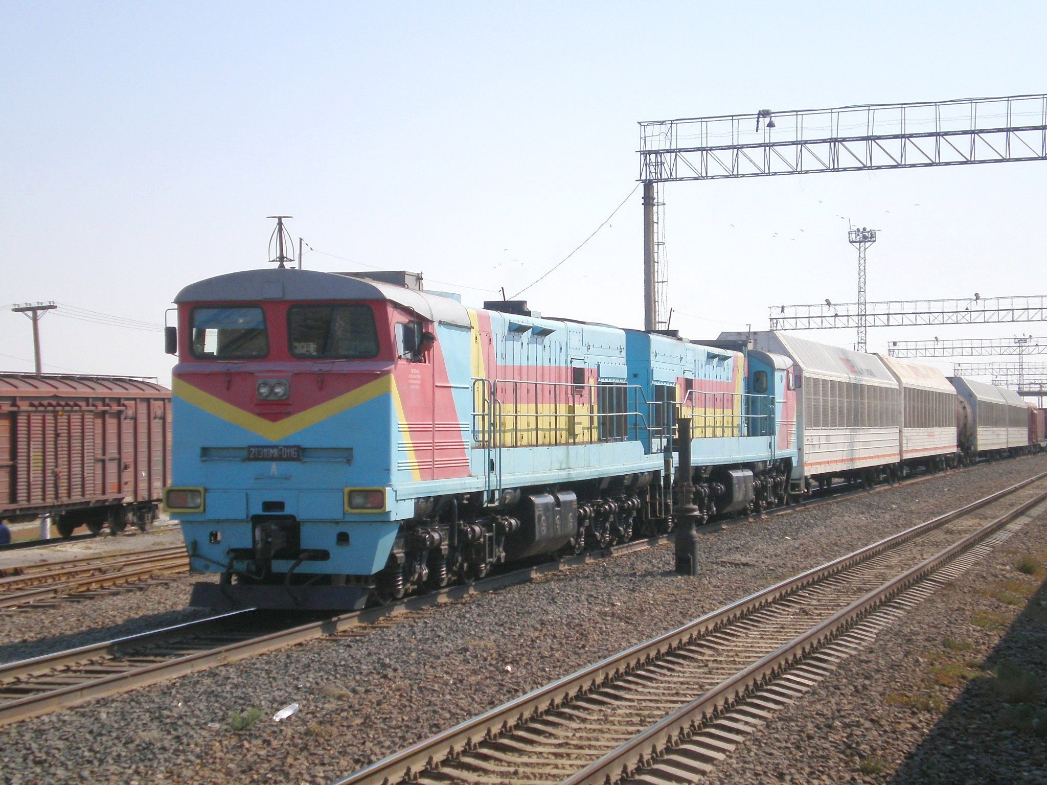 тепловоз 2ТЭ10МК-0116 с грузовым поездом.