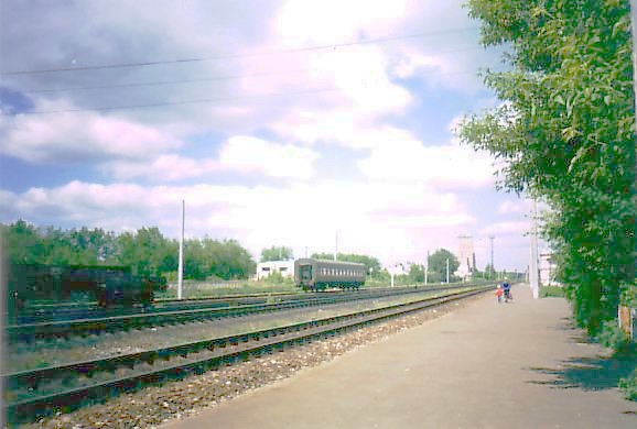 Станция Шатки, вид от вокзала в северном направлении. Пассажирский вагон в 17:00