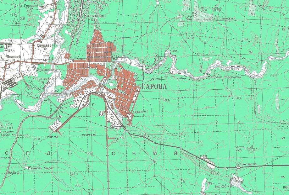 Саров — самый интересный, самый загадочный и самый недоступный пункт этой железнодорожной линии. На месте нынешнего «ядерного» города в конце 17 века был основан монастырь — Саровская пустынь, прославившийся благодаря святому Серафиму Саровскому. В 1927 году монастырь был закрыт и превращён в «трудовую коммуну» для детей-беспризорников, позднее — в исправительный лагерь (СарЛаг). Одновременно здесь строились промышленные предприятия.