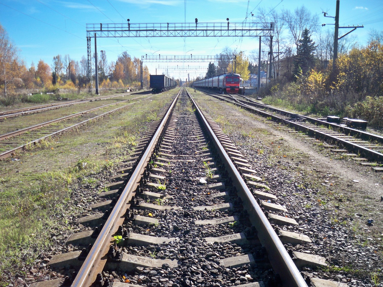Впереди находится станция Конаково ГРЭС на сети общего пользования. Вид в южном направлении.