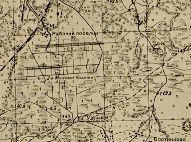 Узкоколейная железная дорога на топографической карте масштаба 1:100 000, изданной в 1941 году.