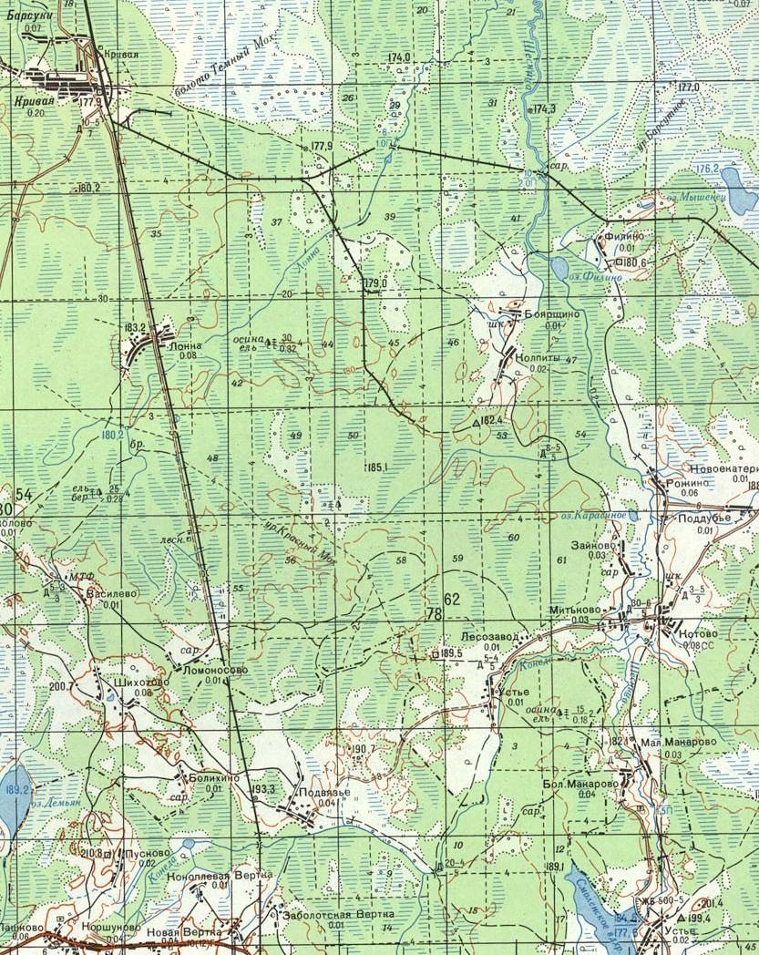 Третий раз — 2 июня 1998 года вышел из автобуса Жарковский — Озёрный в деревне Шихотово, откуда рукой подать до деревни Ломоносово. Собственно Ломоносово состоит из одного покрашенного дома (что редкость для тех краёв), а ширококолейная линия проходит по восточной окраине деревенского поля, и никаких намёков на возможно когда-то бывшую станцию нет. Далее прошёл пару км по железной дороге в сторону Кривой и пошёл на восток через лес в сторону указанного на карте конечного пункта первого ответвления УЖД на юг.