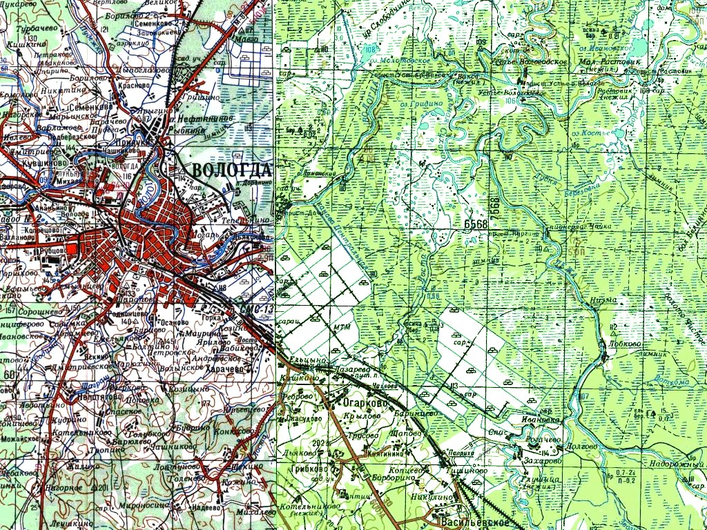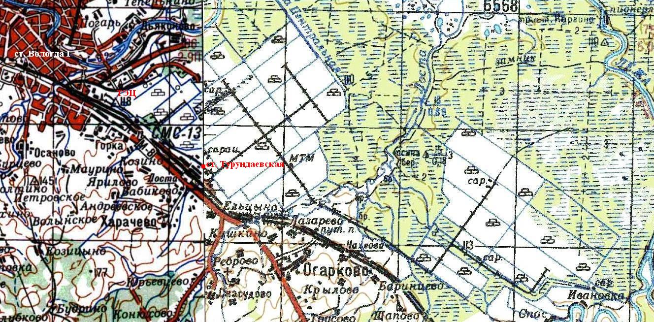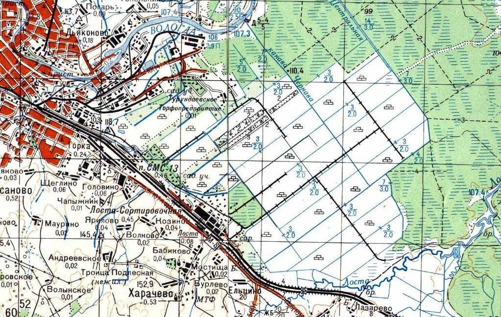 1980 году (восточная часть). Путей к востоку от реки Лосты ещё нет.