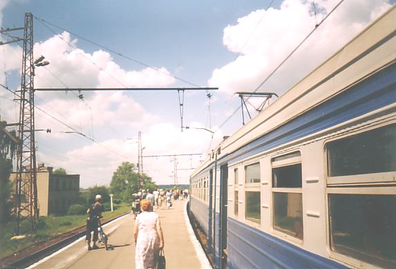на высокой посадочной платформе станции Маклец.