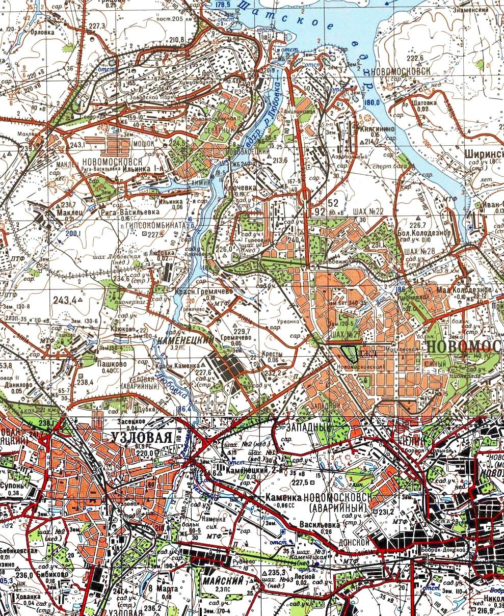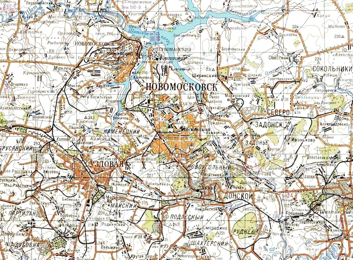 Железнодорожные линии вблизи Сталиногорска на топографической карте