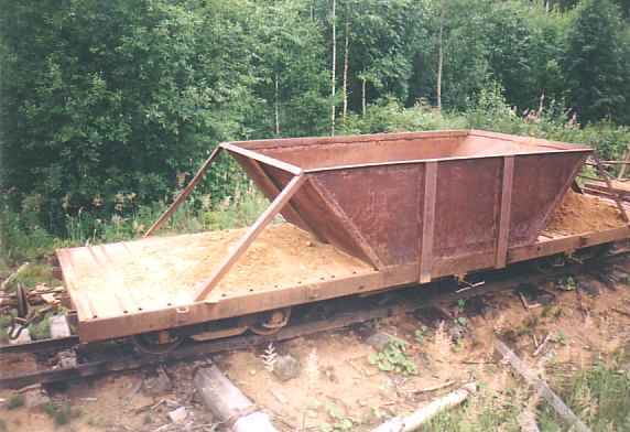 Вагон для перевозки песка (возможно, переоборудованная платформа).