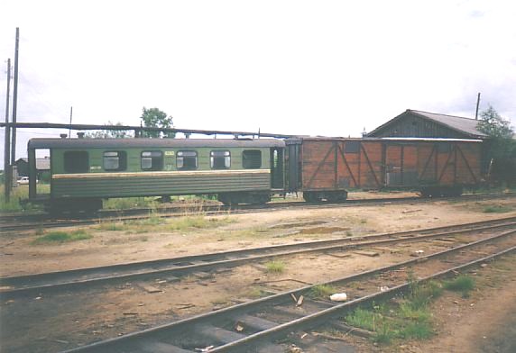 (1 пассажирский вагон, 1 грузовой вагон) вблизи депо.