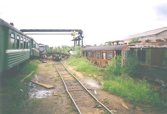 Один из путей вблизи депо. Справа — пассажирские вагоны производства Польши,