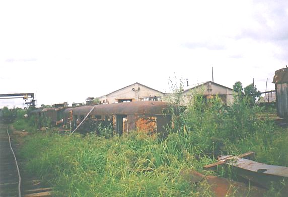 Западная окраина посёлка Ула. Разгромленная автомотриса АМ1,