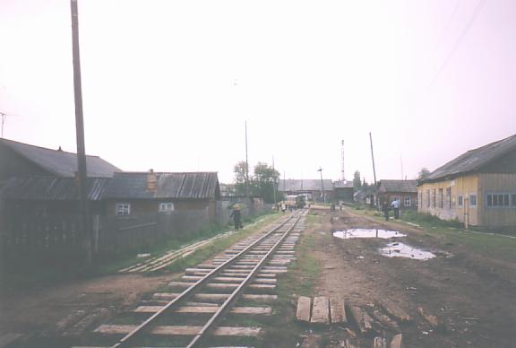 «Пассажирская» ветка в посёлке Ула. Впереди — центр посёлка, здание сельсовета.